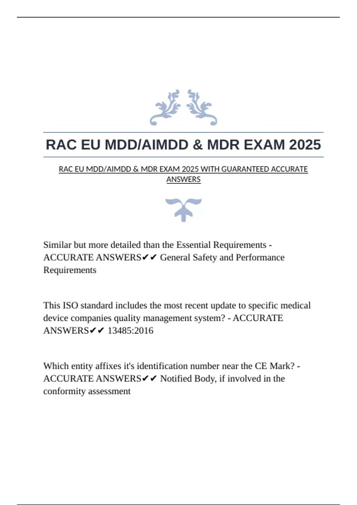 RAC EU MDD/AIMDD & MDR EXAM 2025 WITH GUARANTEED ACCURATE