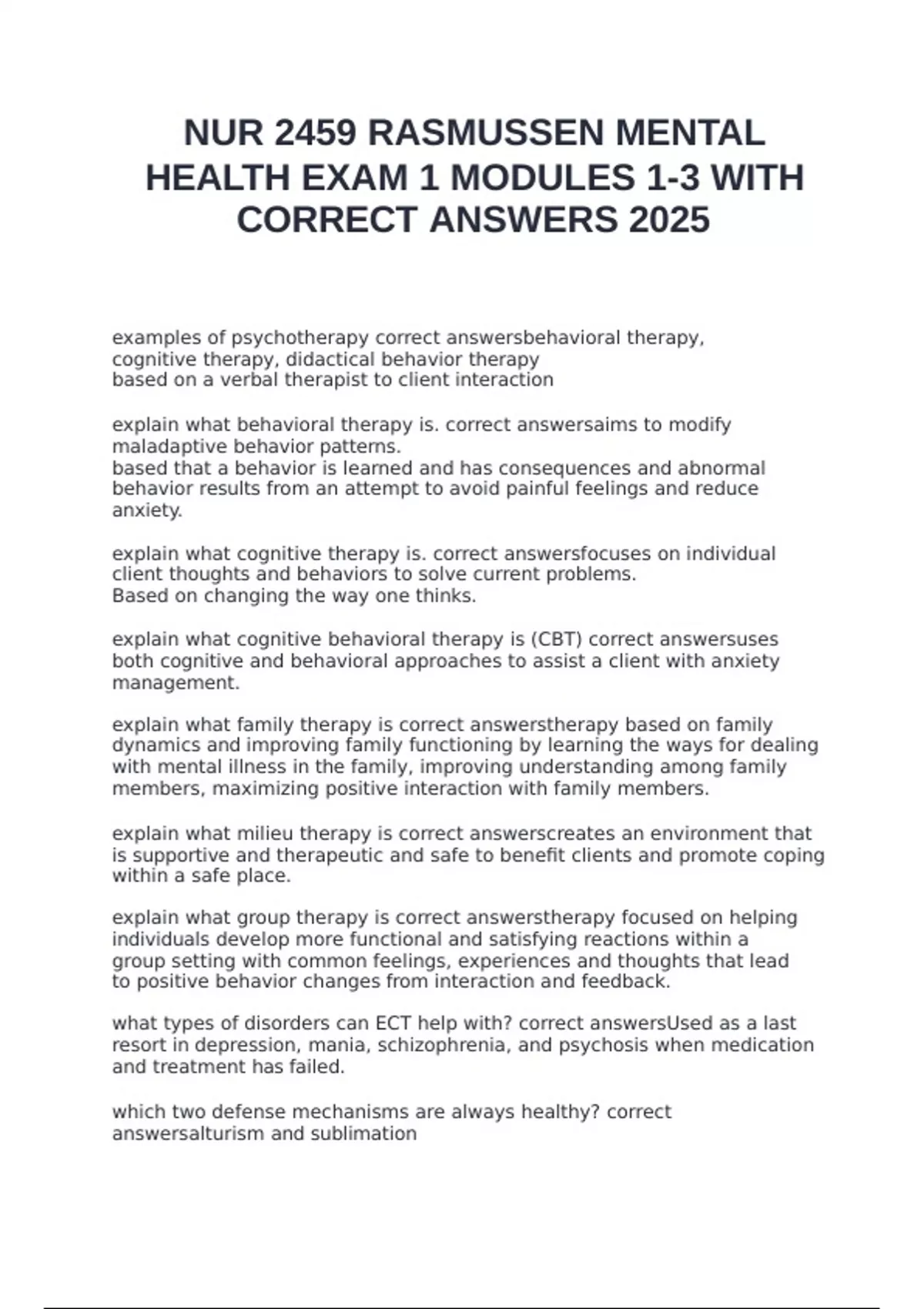 explain what cognitive behavioral therapy is (CBT) correct answersuses