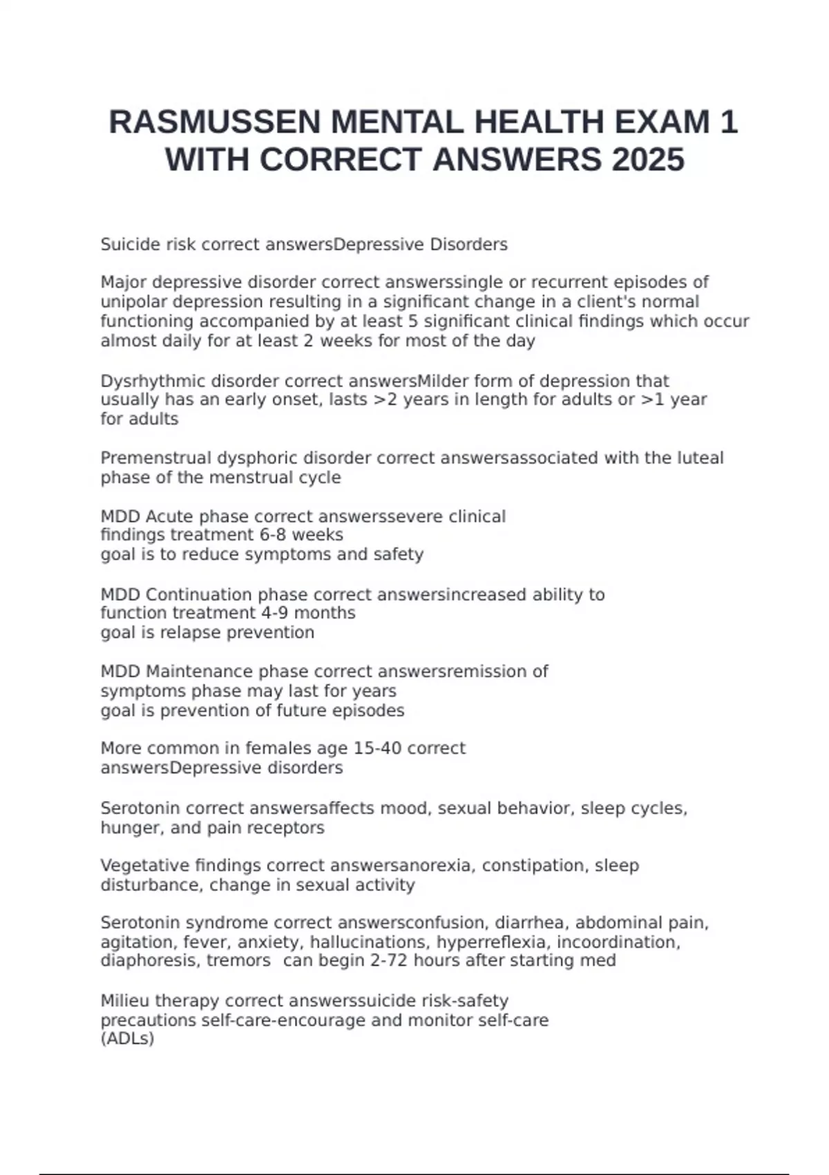 RASMUSSEN MENTAL HEALTH EXAM 1