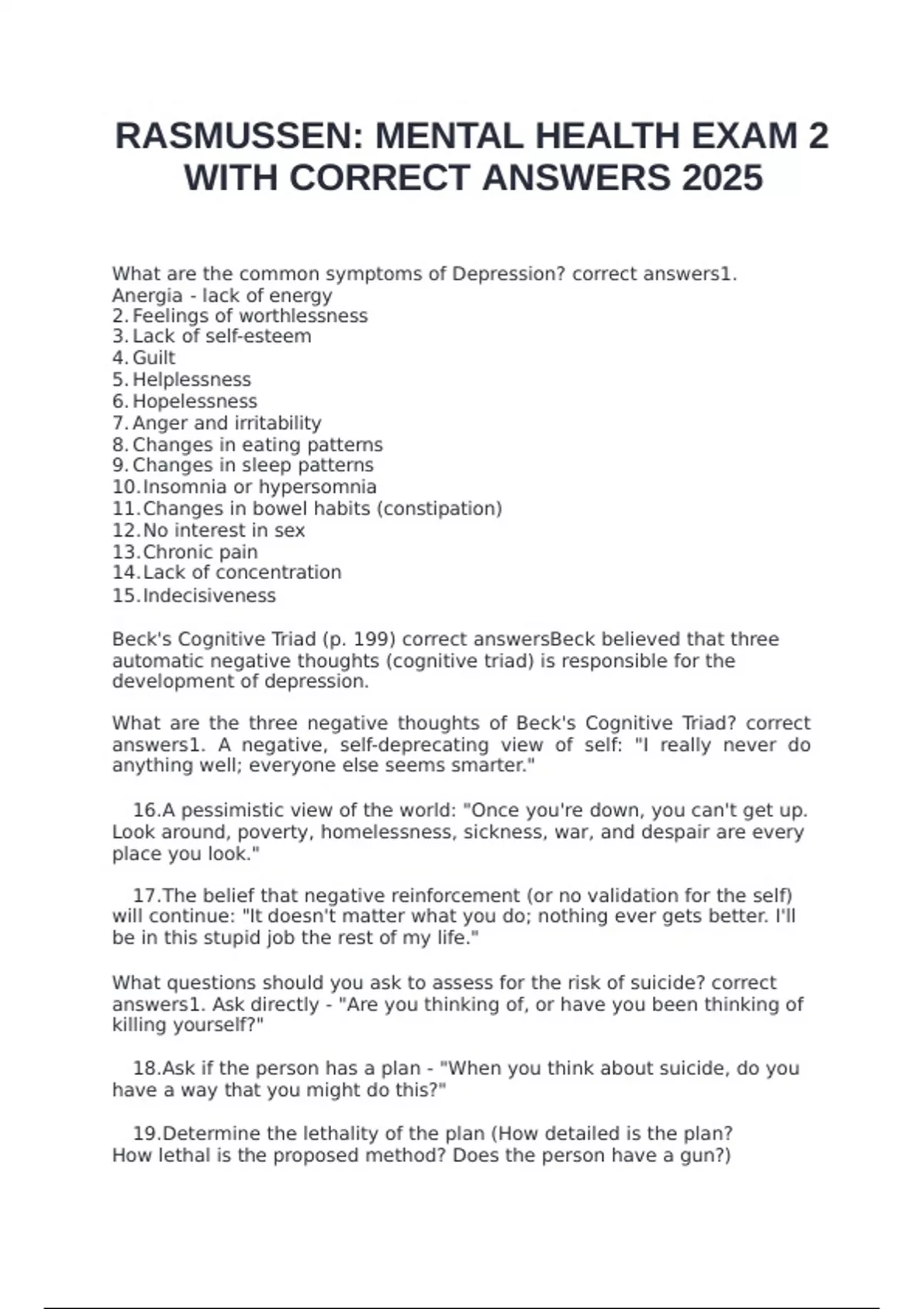 RASMUSSEN: MENTAL HEALTH EXAM 2
