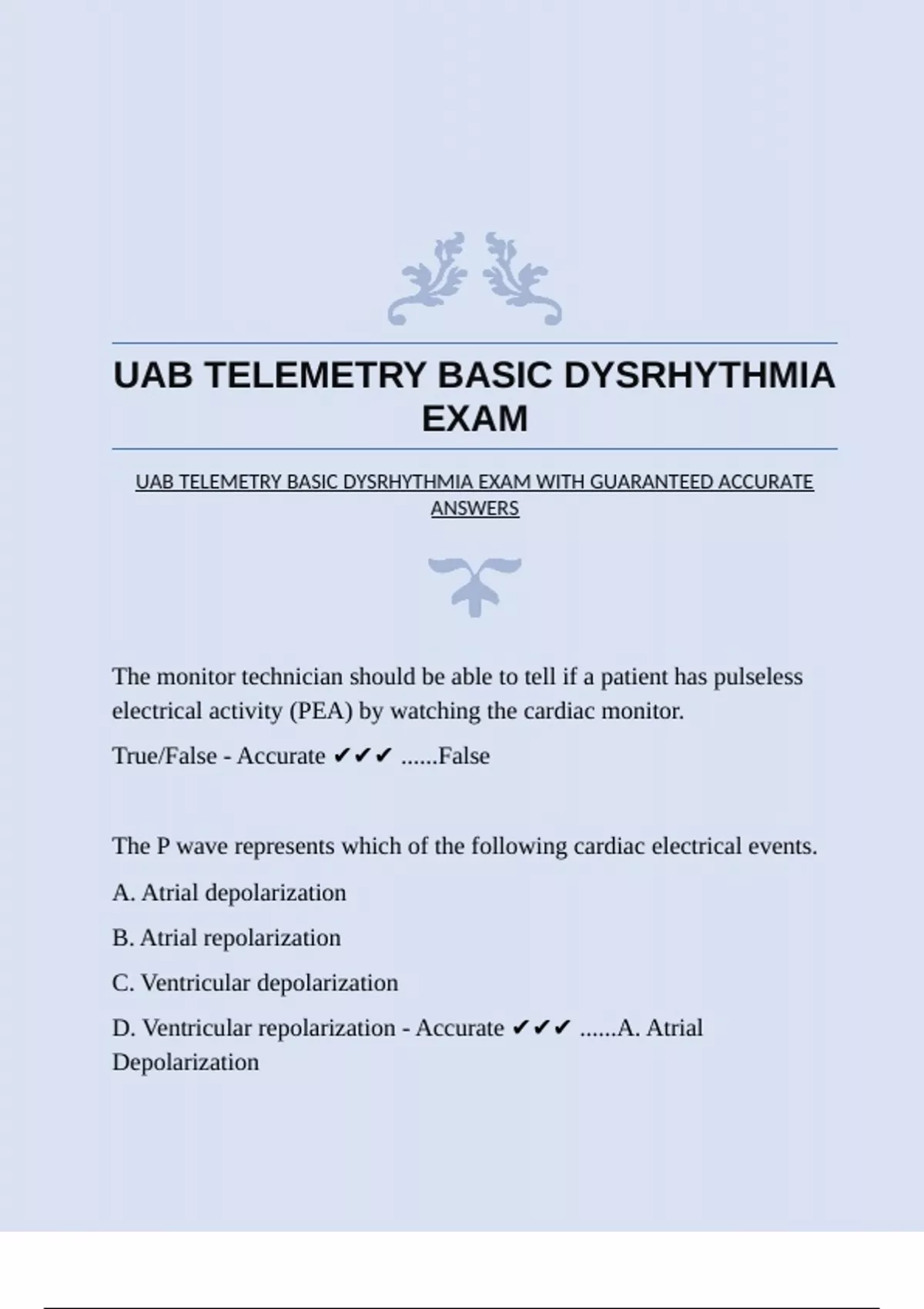 UAB TELEMETRY BASIC DYSRHYTHMIA EXAM WITH GUARANTEED ACCURATE