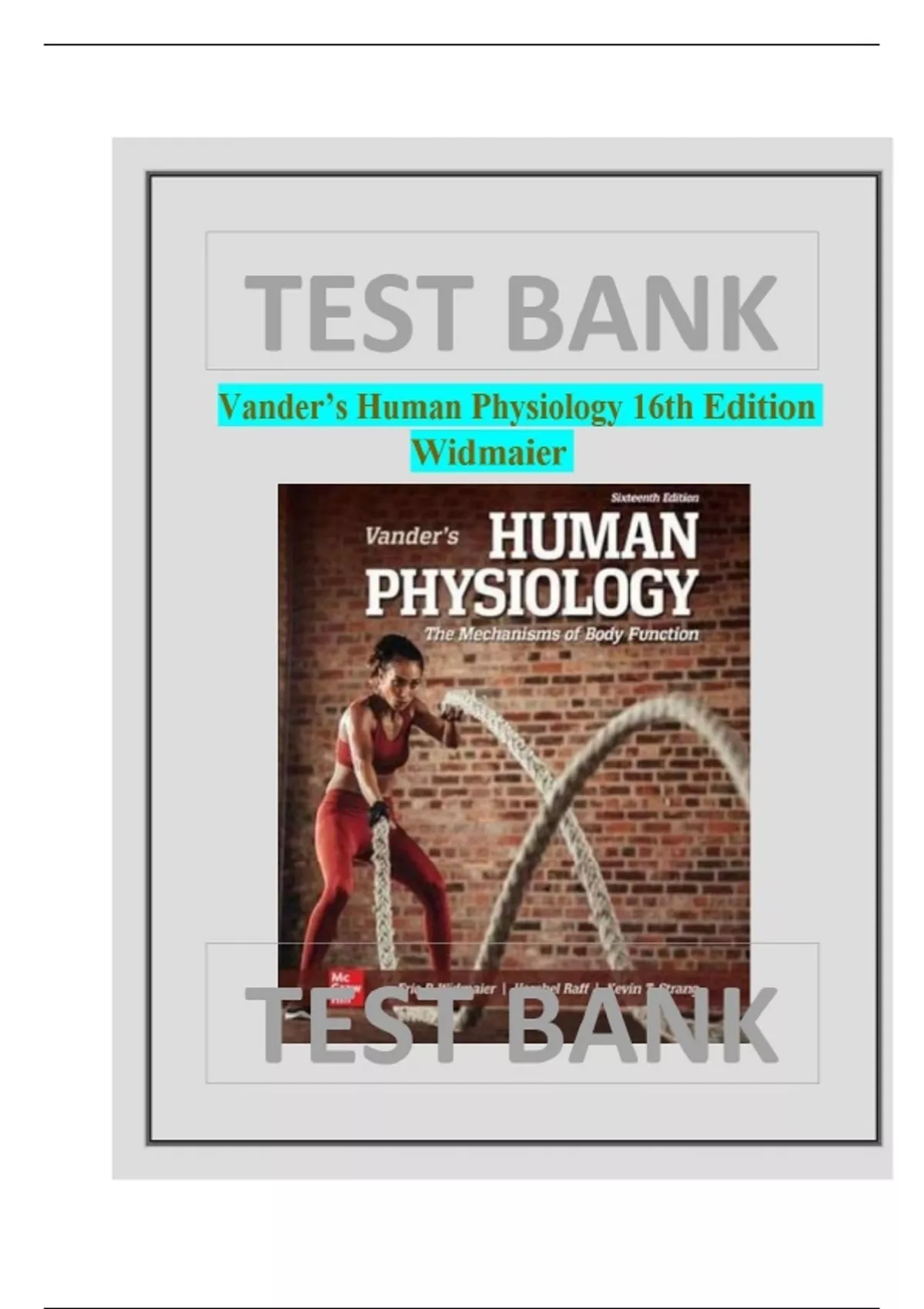 Test Bank For Vander’s Human Physiology 16th Edition By Eric Widmaier, Hershel Raff and Kevin Strang| Chapters 1-18| LATEST