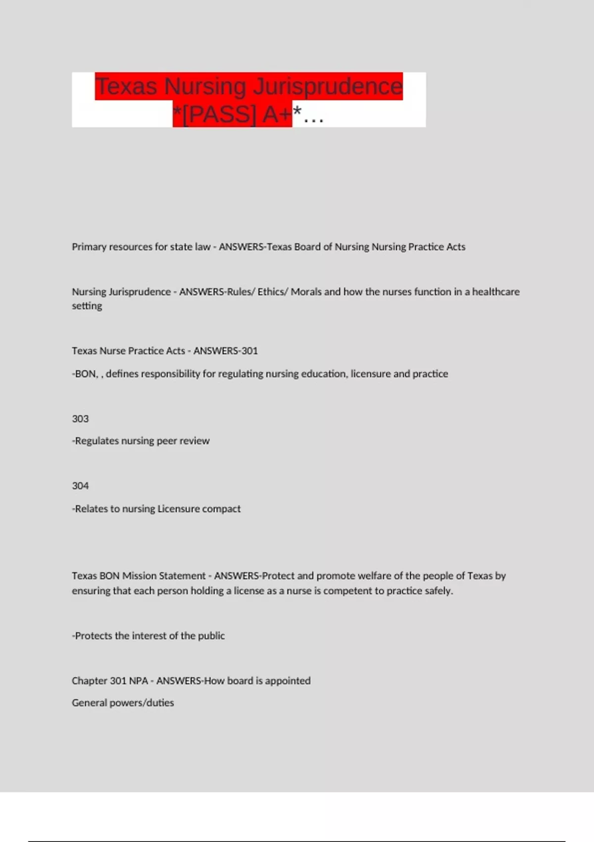 Nursing Jurisprudence - ANSWERS-Rules/ Ethics/ Morals and how the nurses function in a healthcare
