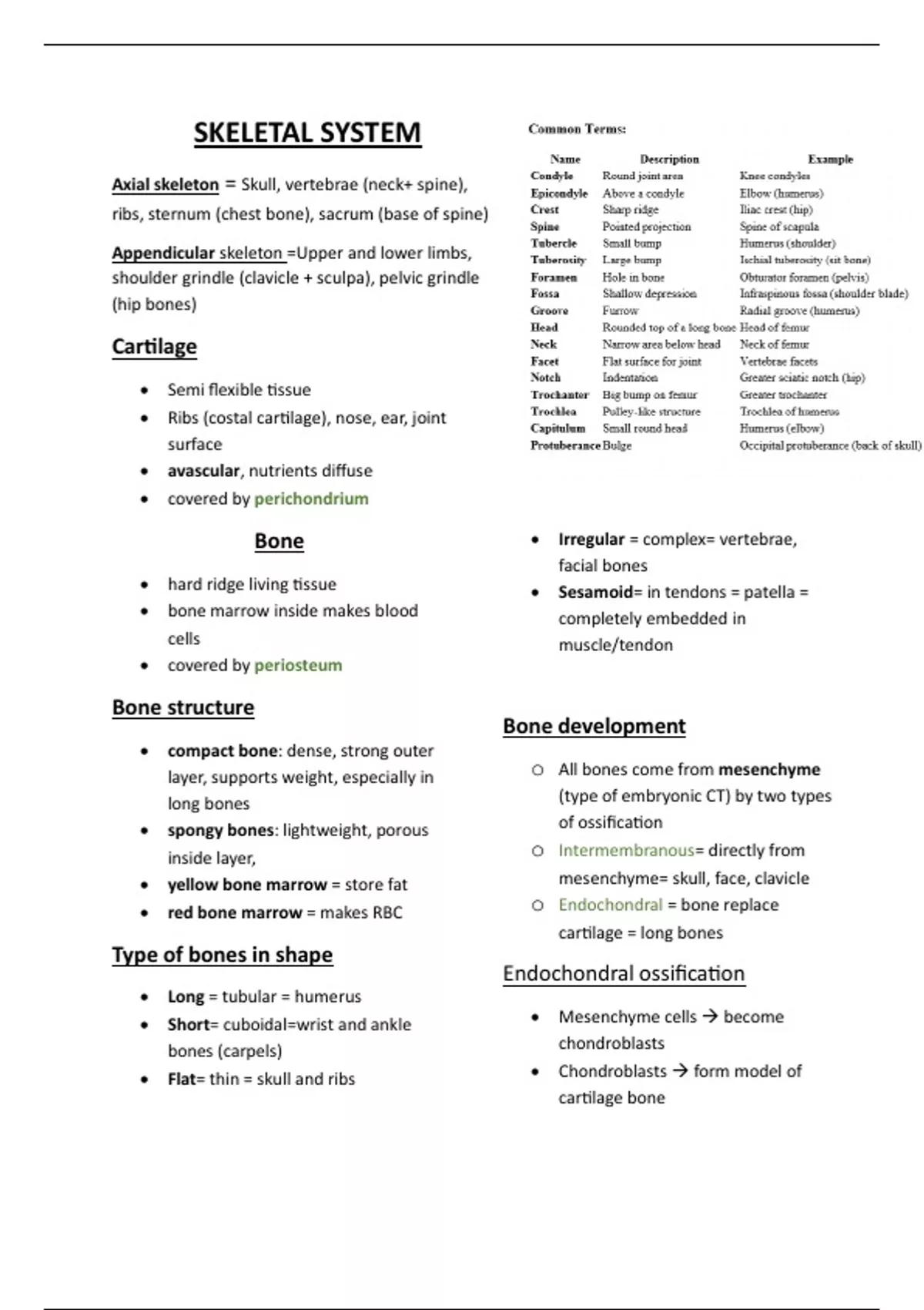• red bone marrow = makes RBC o Endochondral = bone replace