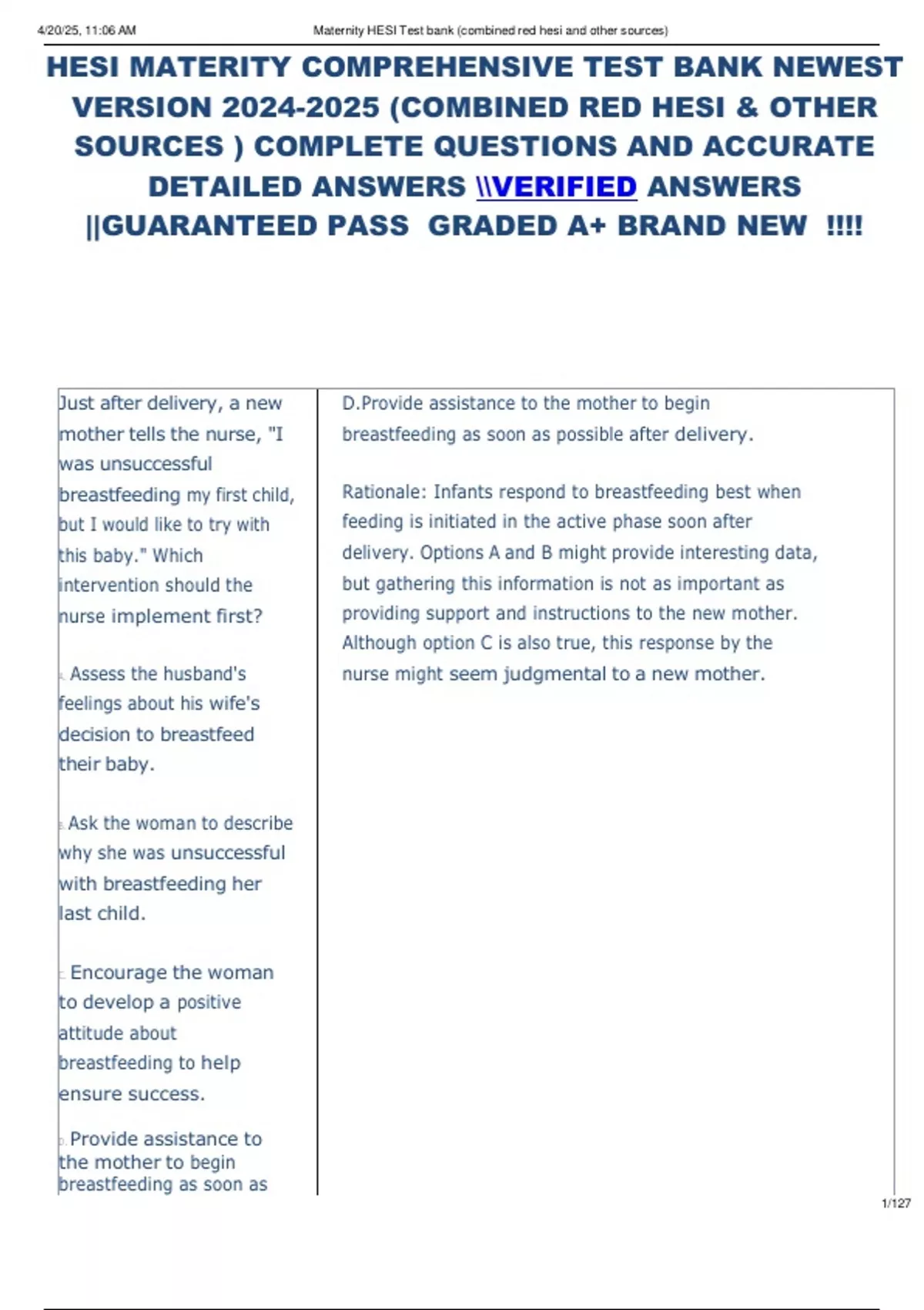 , 4/20/25, 11:06 AM Maternity HESI Test bank (combined red hesi and other sources)