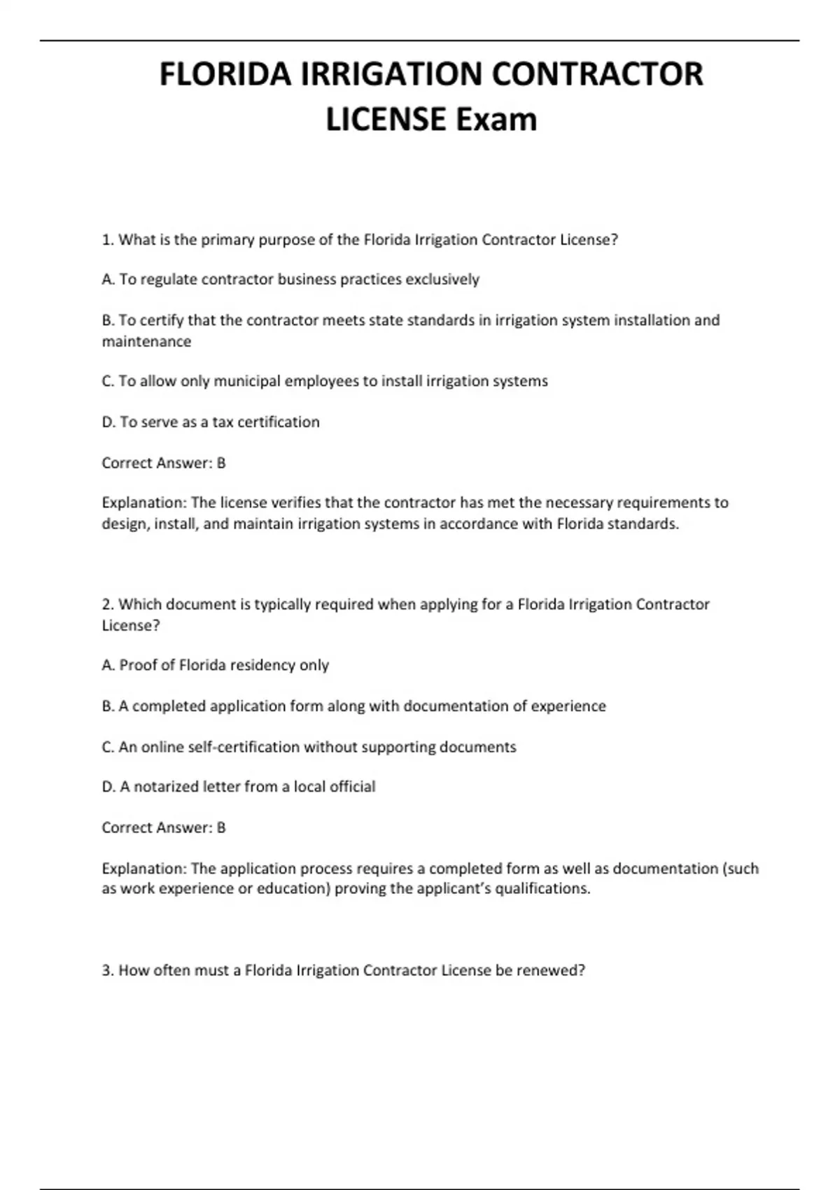 1. What is the primary purpose of the Florida Irrigation Contractor License?