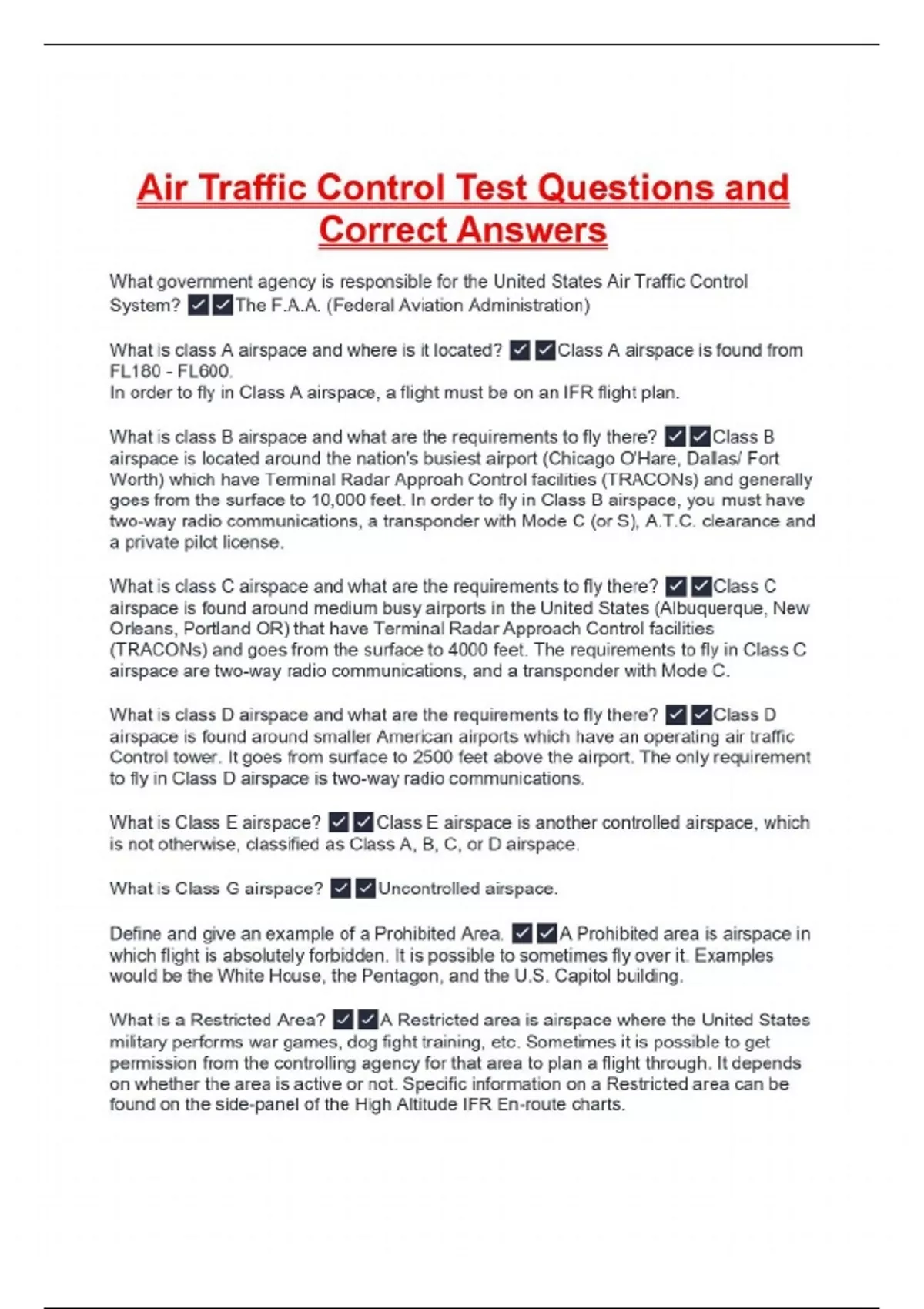 Air Traffic Control Test Questions and Correct Answers
