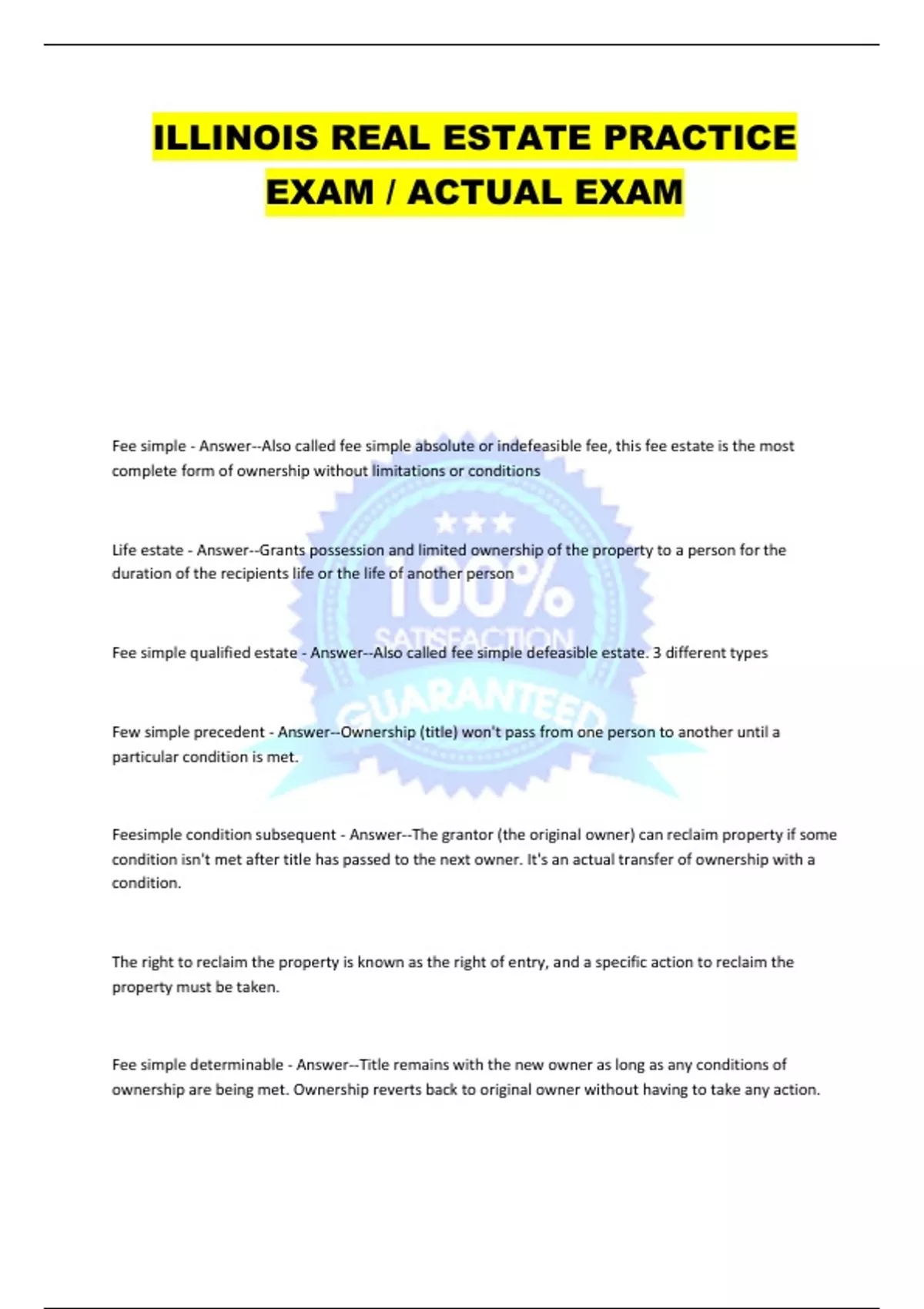 ILLINOIS REAL ESTATE PRACTICE EXAM / ACTUAL EXAM
