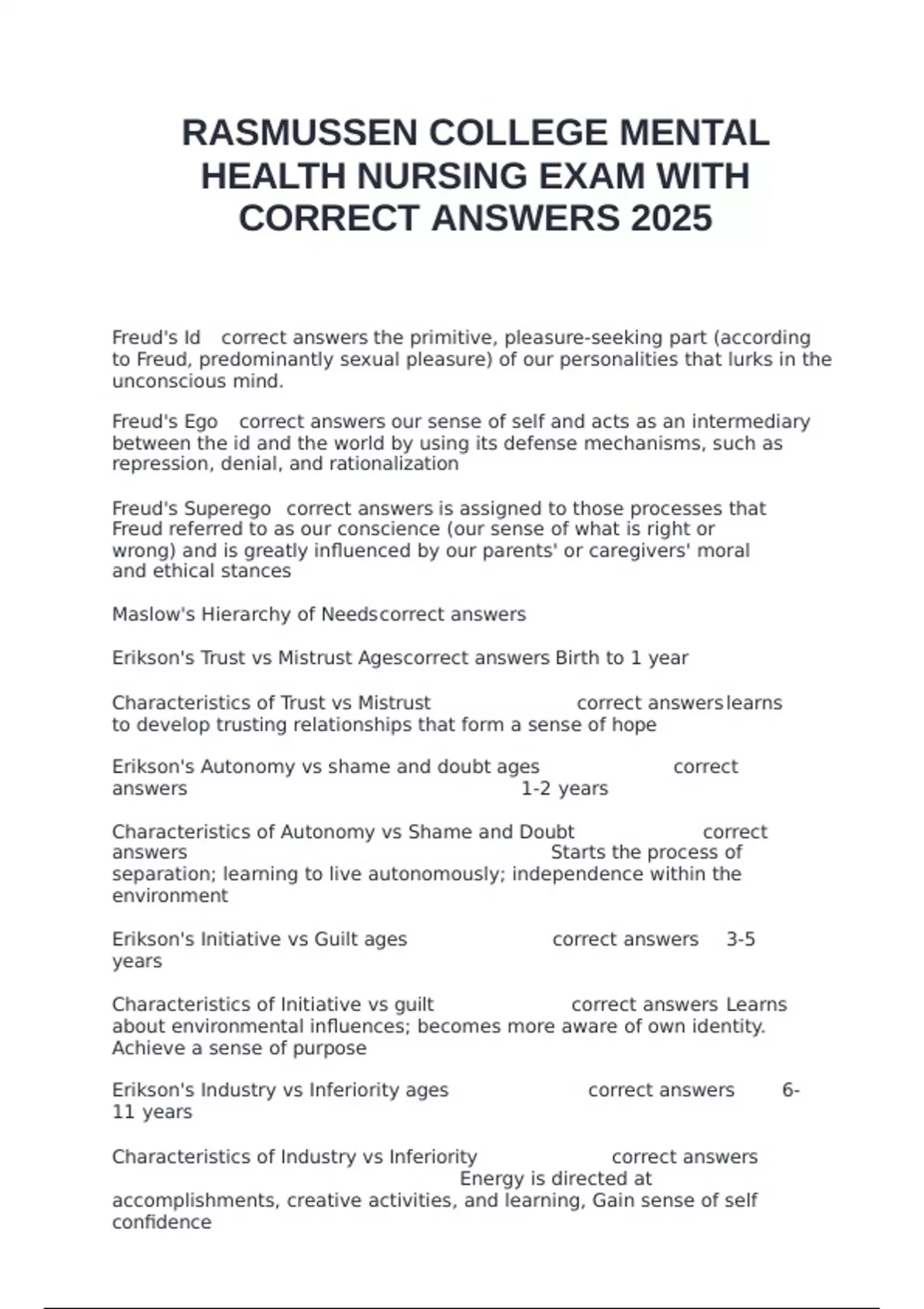 CORRECT ANSWERS 2025