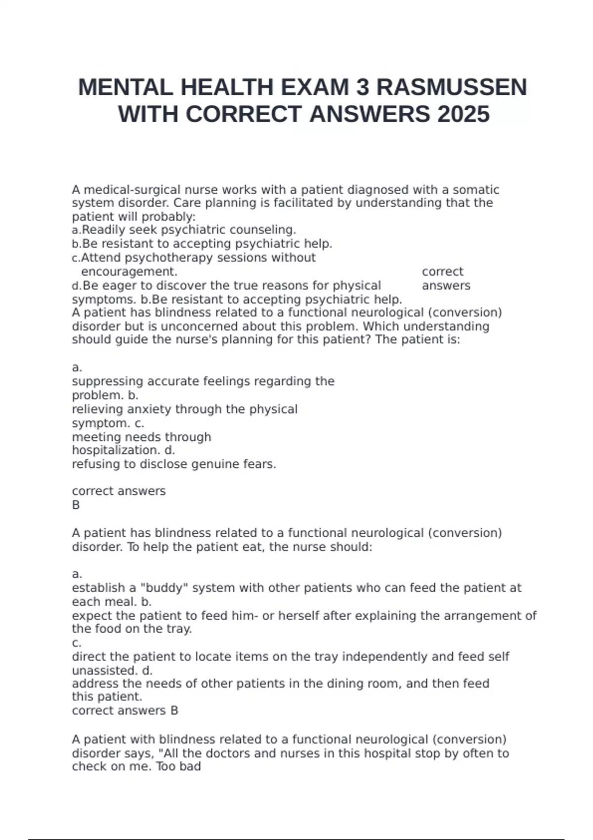 disorder d. correct answers C