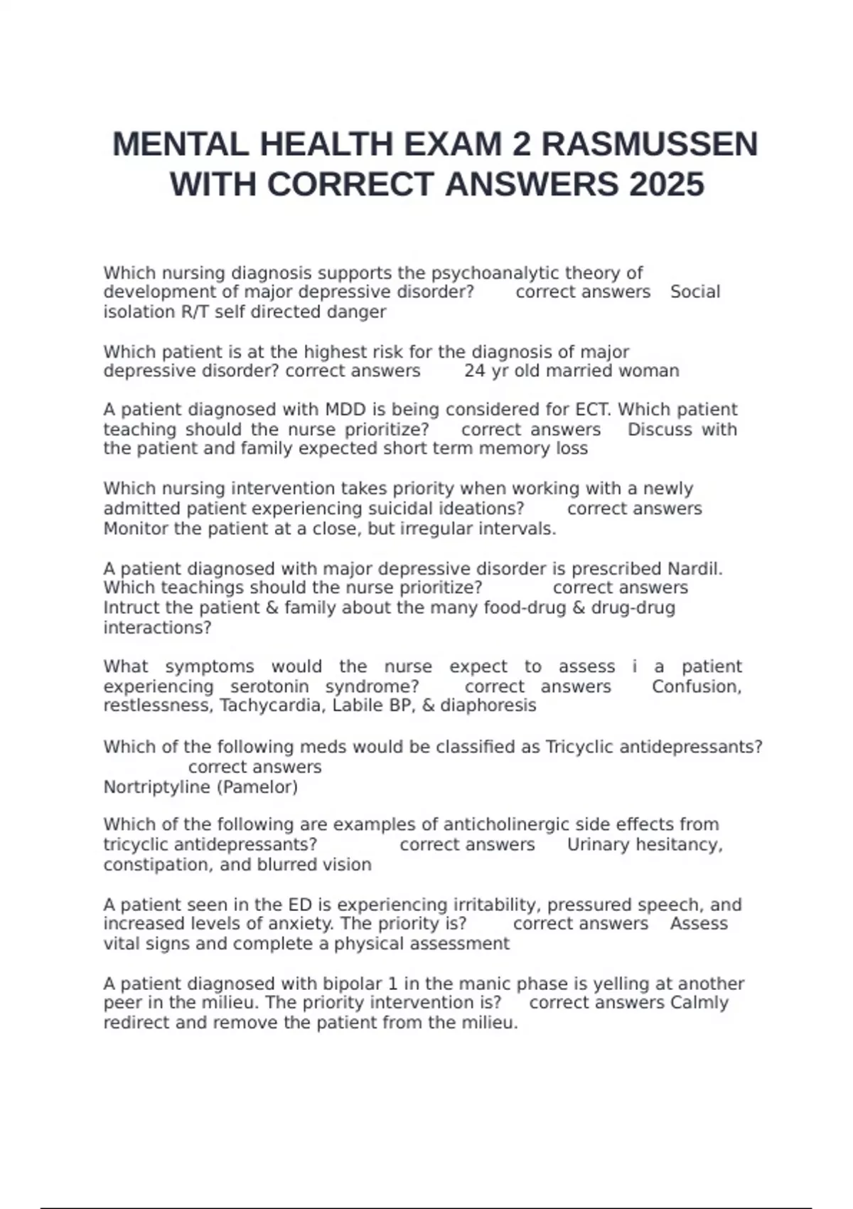 MENTAL HEALTH EXAM 2 RASMUSSEN