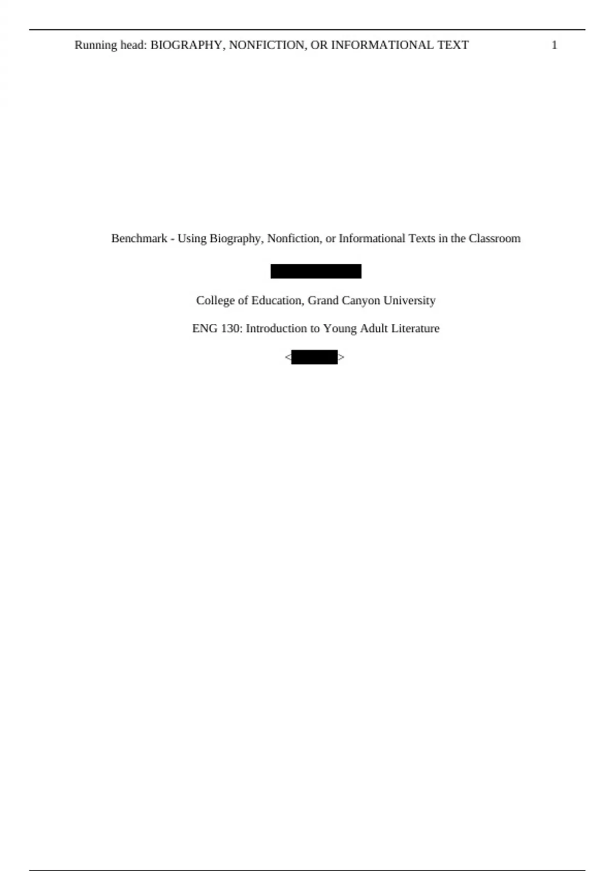 ENG 130 Topic 4 Assessment; Benchmark - Using Biography, Nonfiction, or Informational Texts in the Classroom
