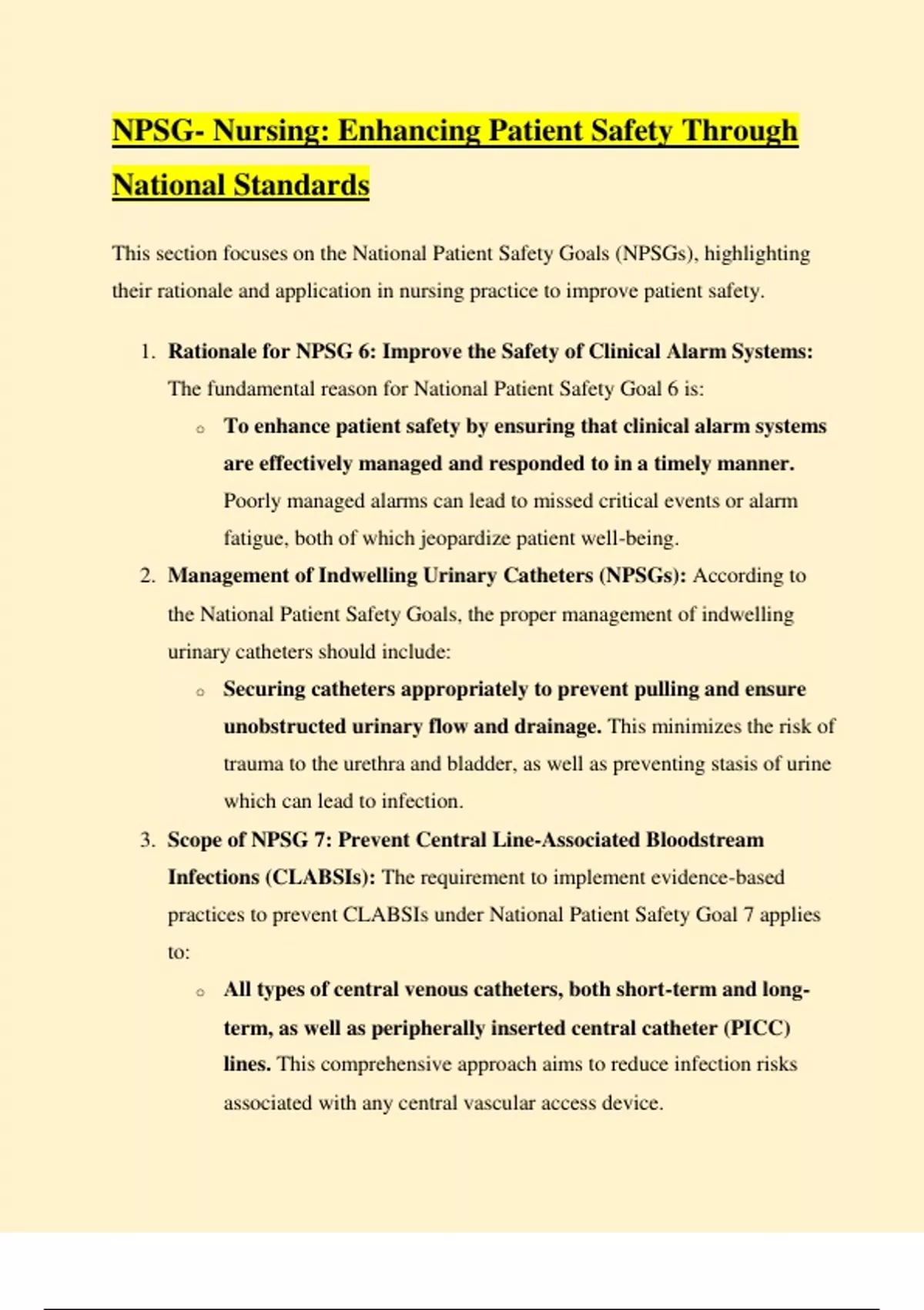 This section focuses on the National Patient Safety Goals (NPSGs), highlighting
