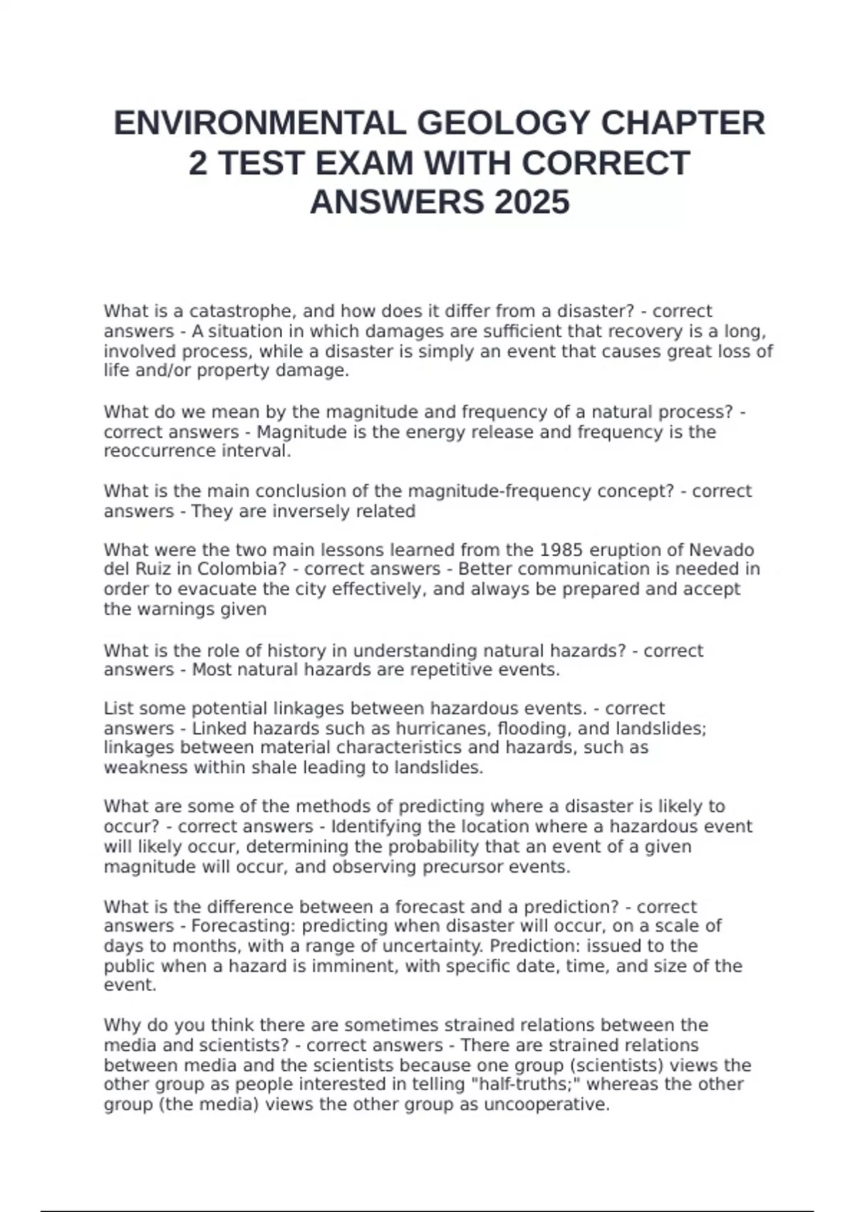 answers - Most natural hazards are repetitive events.
