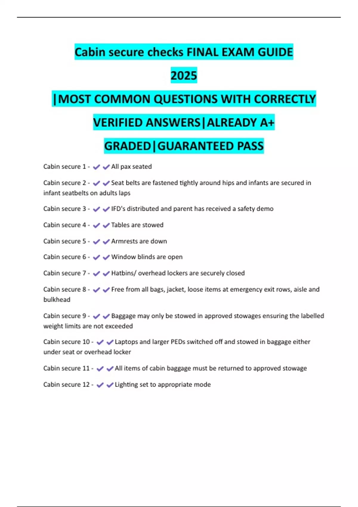Cabin secure checks Prep Guide 2025/26 | Latest Verified Quizzes and Answers | A+ Guarantee