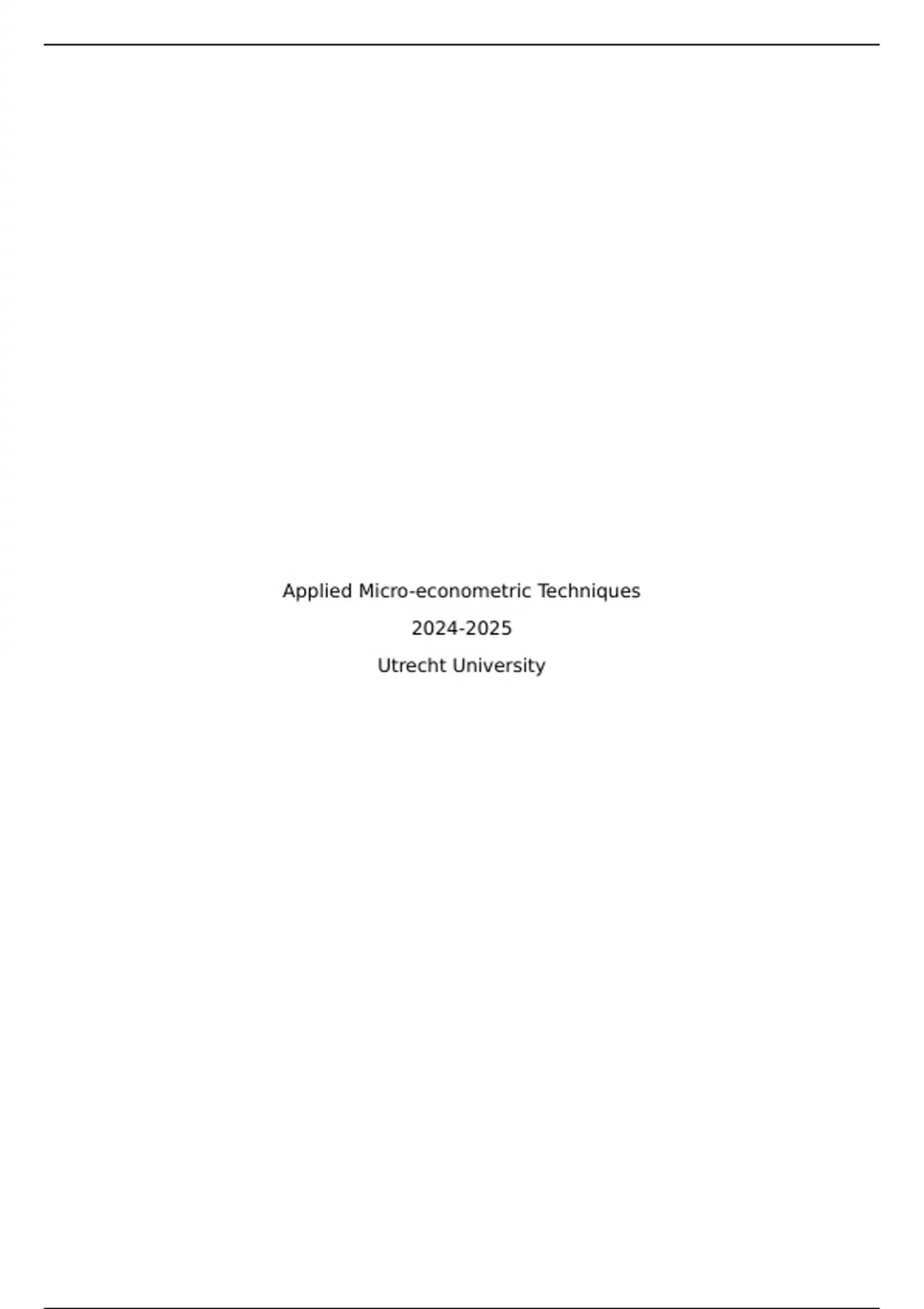 , Applied Micro-econometric Techniques