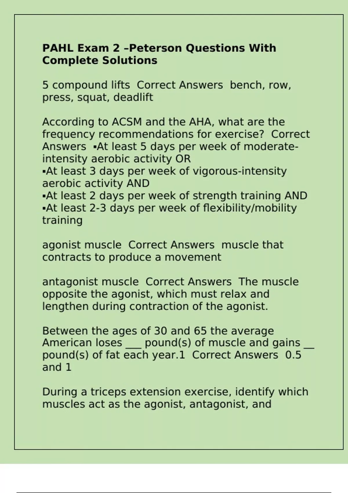 PAHL Exam 2 –Peterson Questions With Complete Solutions