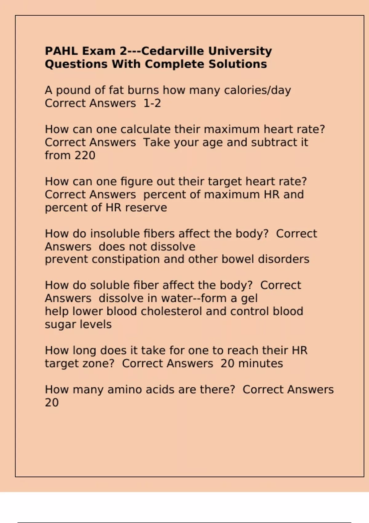 PAHL Exam 2---Cedarville University Questions With Complete Solutions