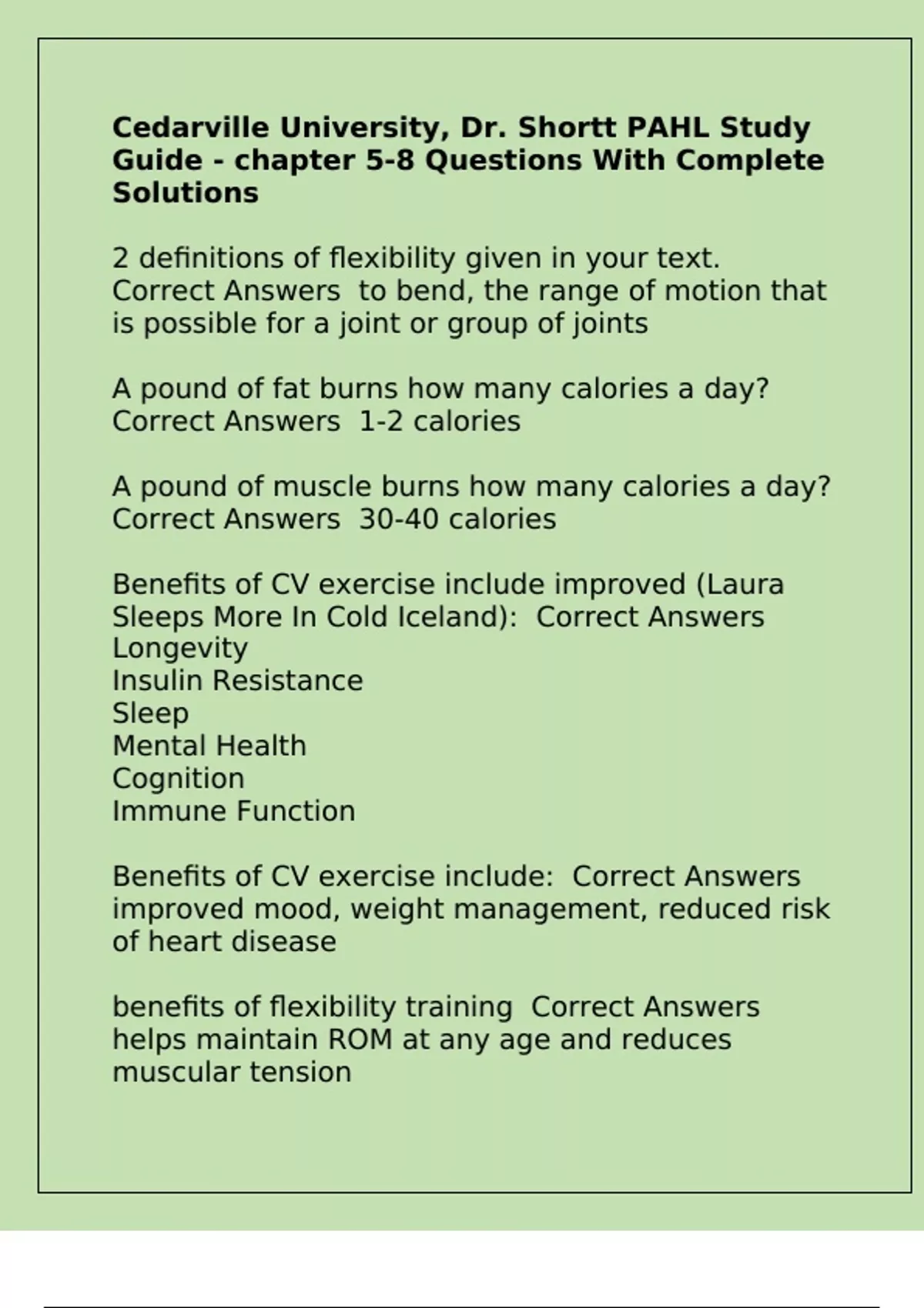 Cedarville University, Dr. Shortt PAHL Study Guide - chapter 5-8 Questions With Complete Solutions