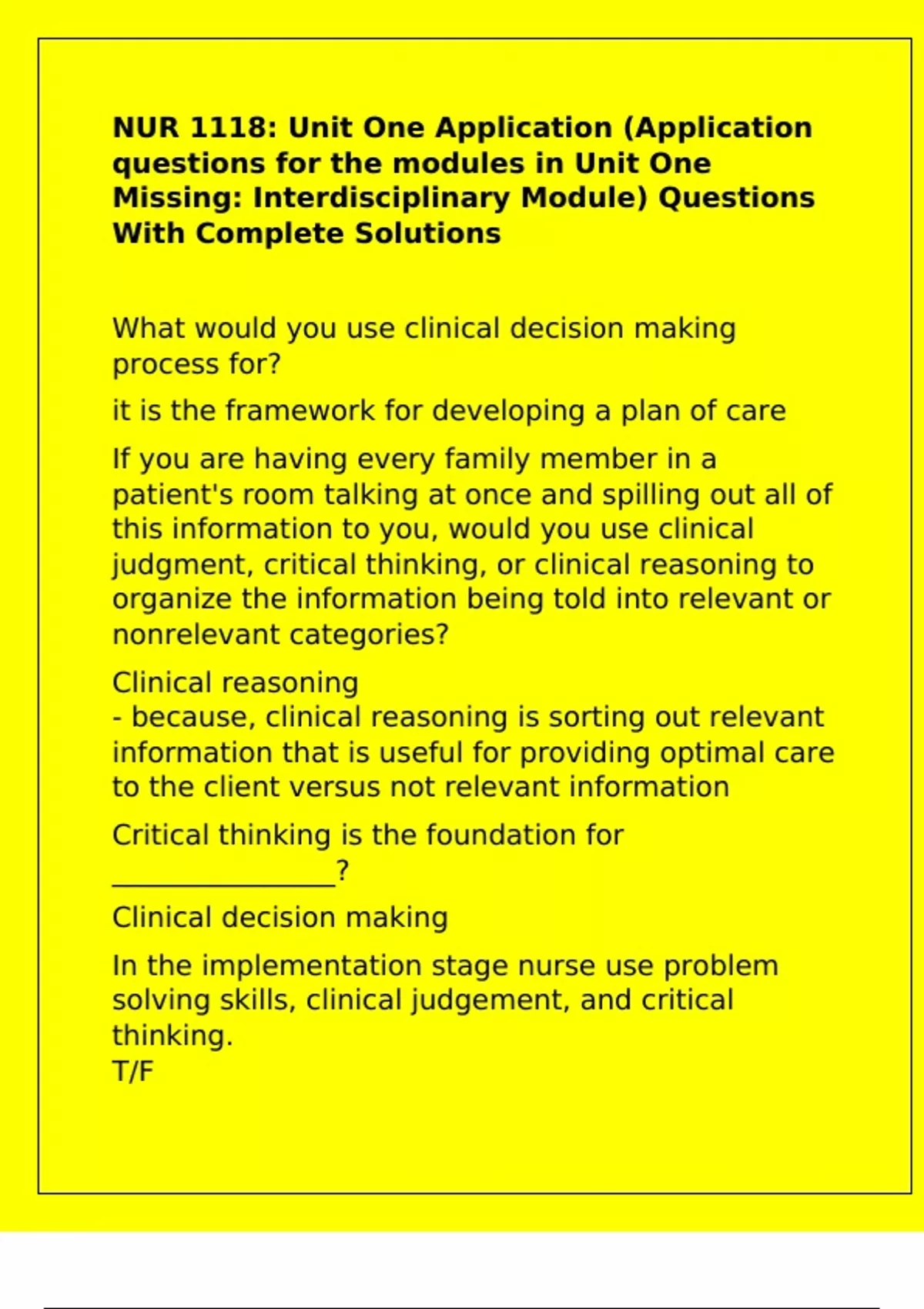 solving skills, clinical judgement, and critical
