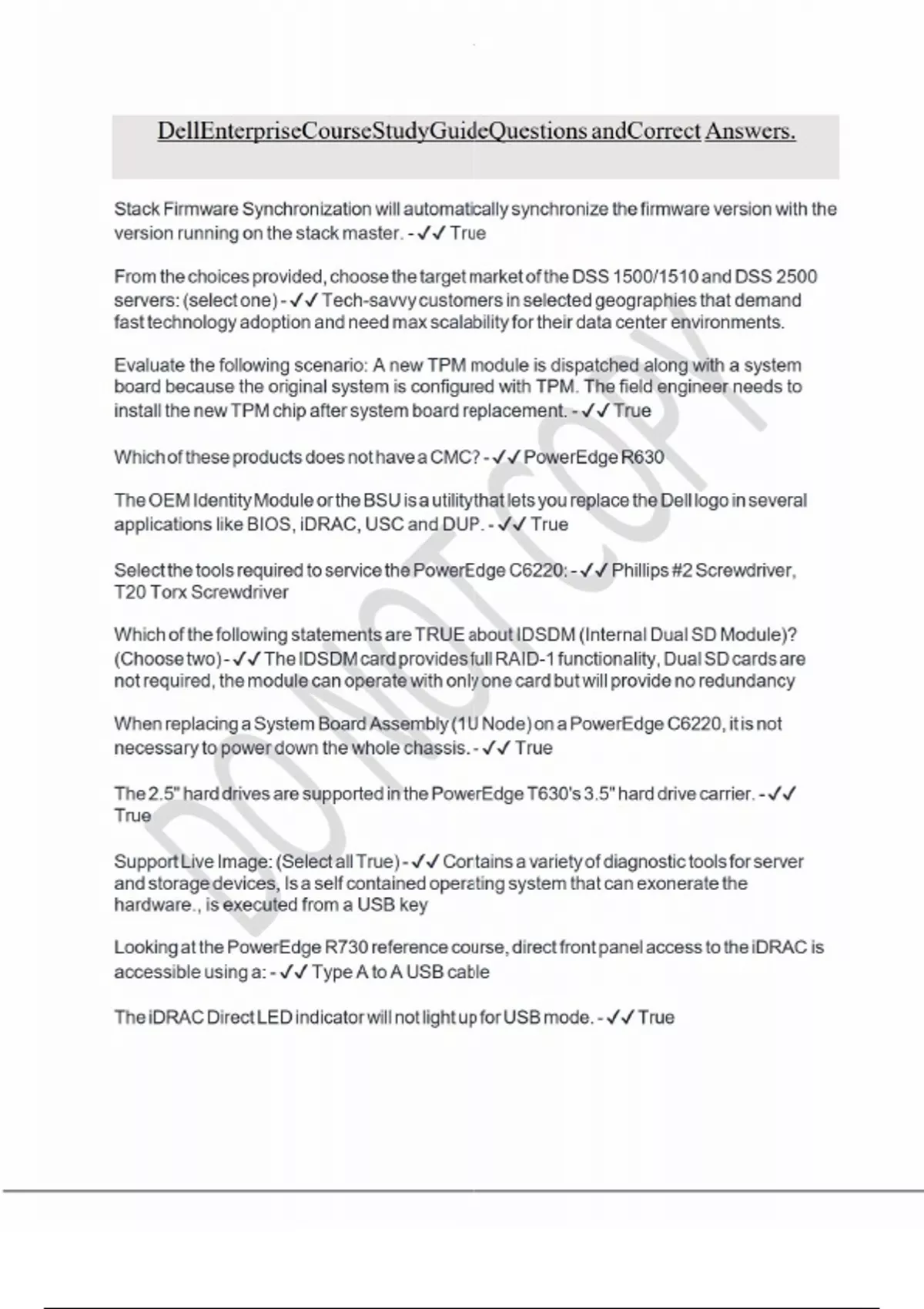 Dell Enterprise Course Study Guide Questions and Correct Answers.