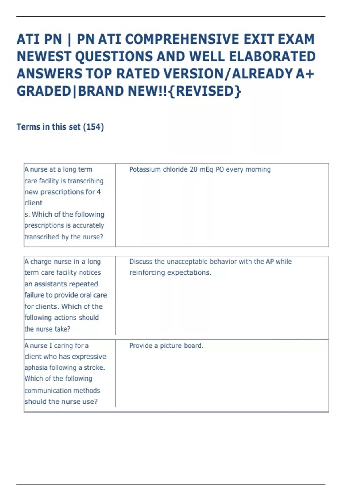 ATI PN | PN ATI COMPREHENSIVE EXIT EXAM NEWEST QUESTIONS AND WELL ELABORATED ANSWERS TOP RATED VERSION/ALREADY A+ GRADED|BRAND NEW!!{REVISED} ATI PN | PN ATI COMPREHENSIVE EXIT EXAM NEWEST QUESTIONS AND WELL ELABORATED ANSWERS TOP RATED VERSION/ALREA