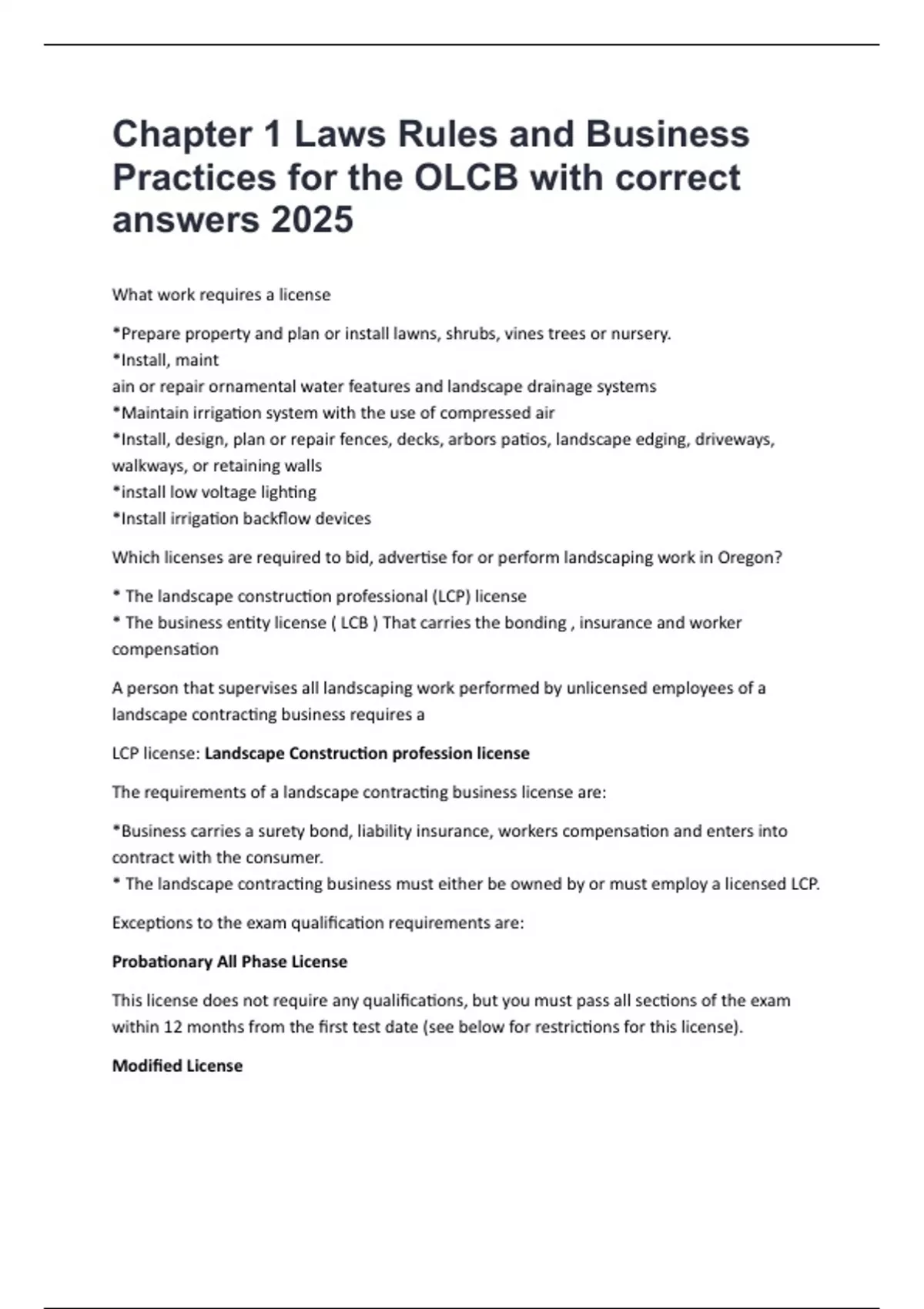 * The landscape contracting business must either be owned by or must employ a licensed LCP.