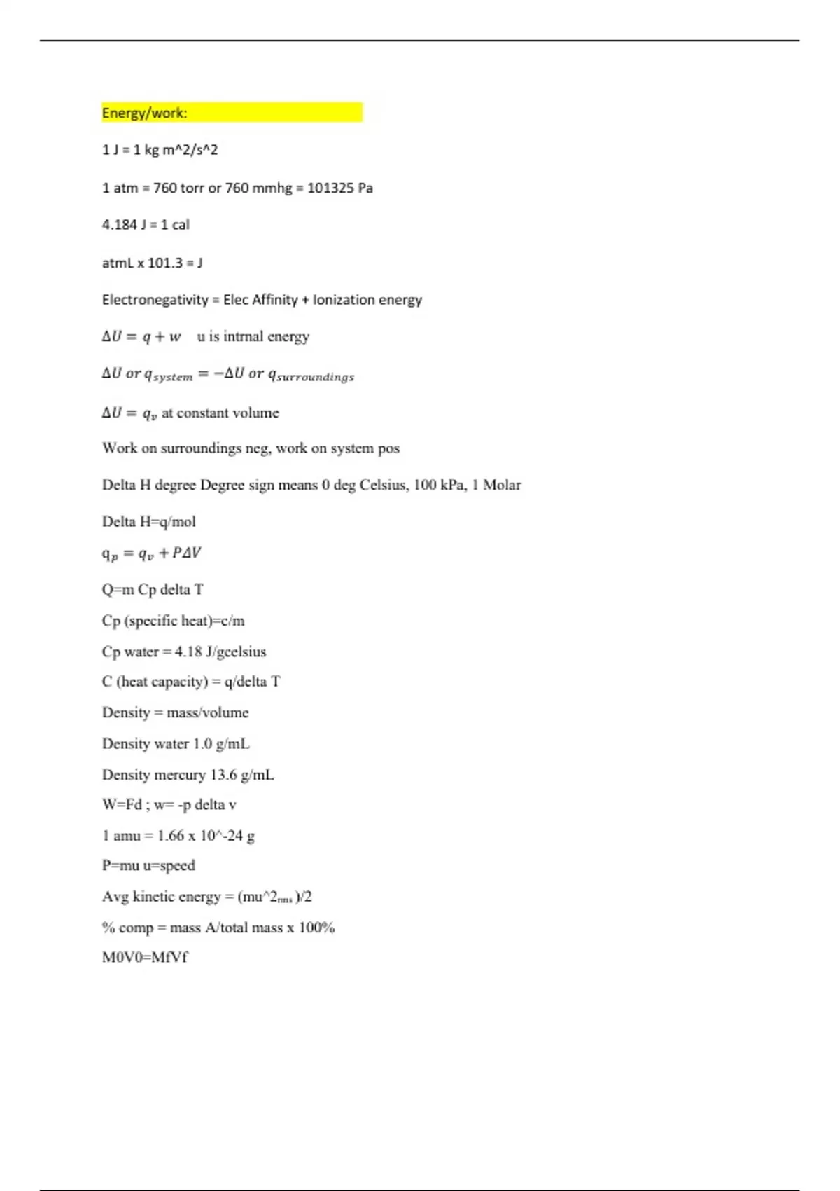 Δ𝑈 = 𝑞 + 𝑤 u is intrnal energy