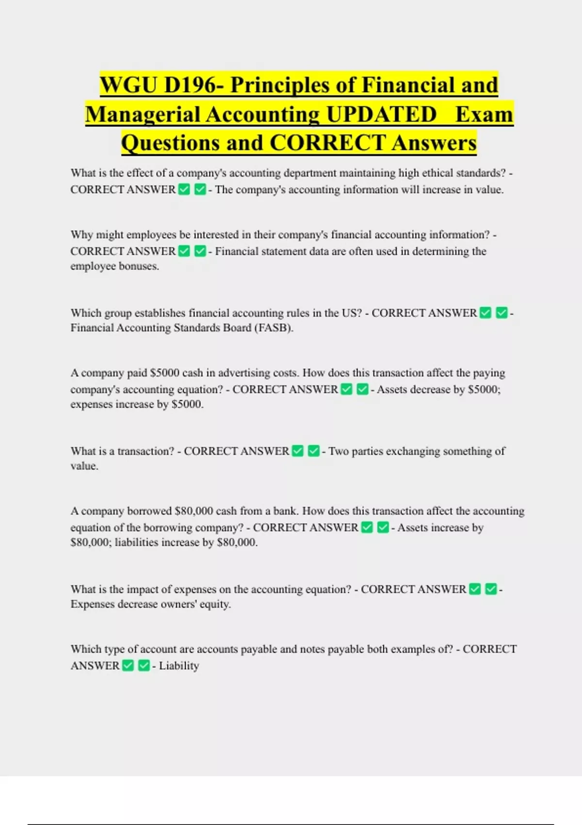Managerial Accounting UPDATED Exam