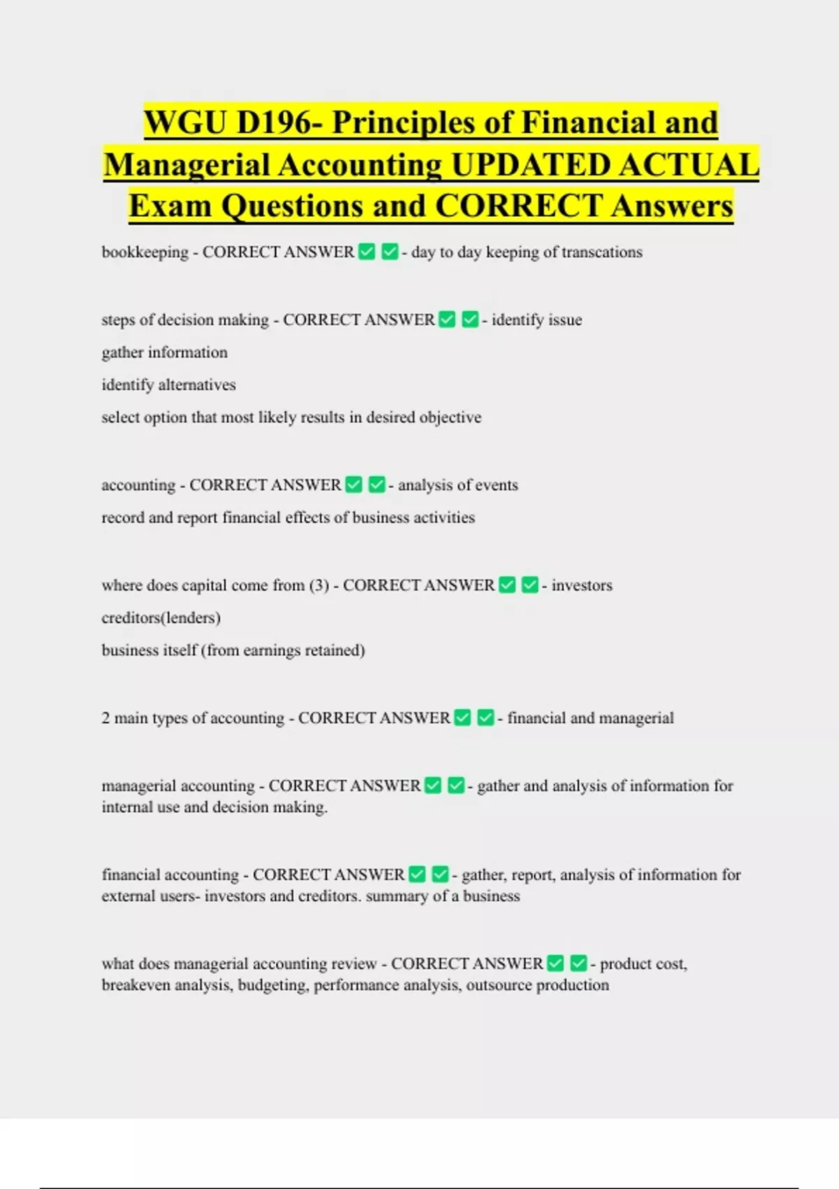 WGU D196- Principles of Financial and Managerial Accounting UPDATED ACTUAL Exam Questions and CORRECT Answers
