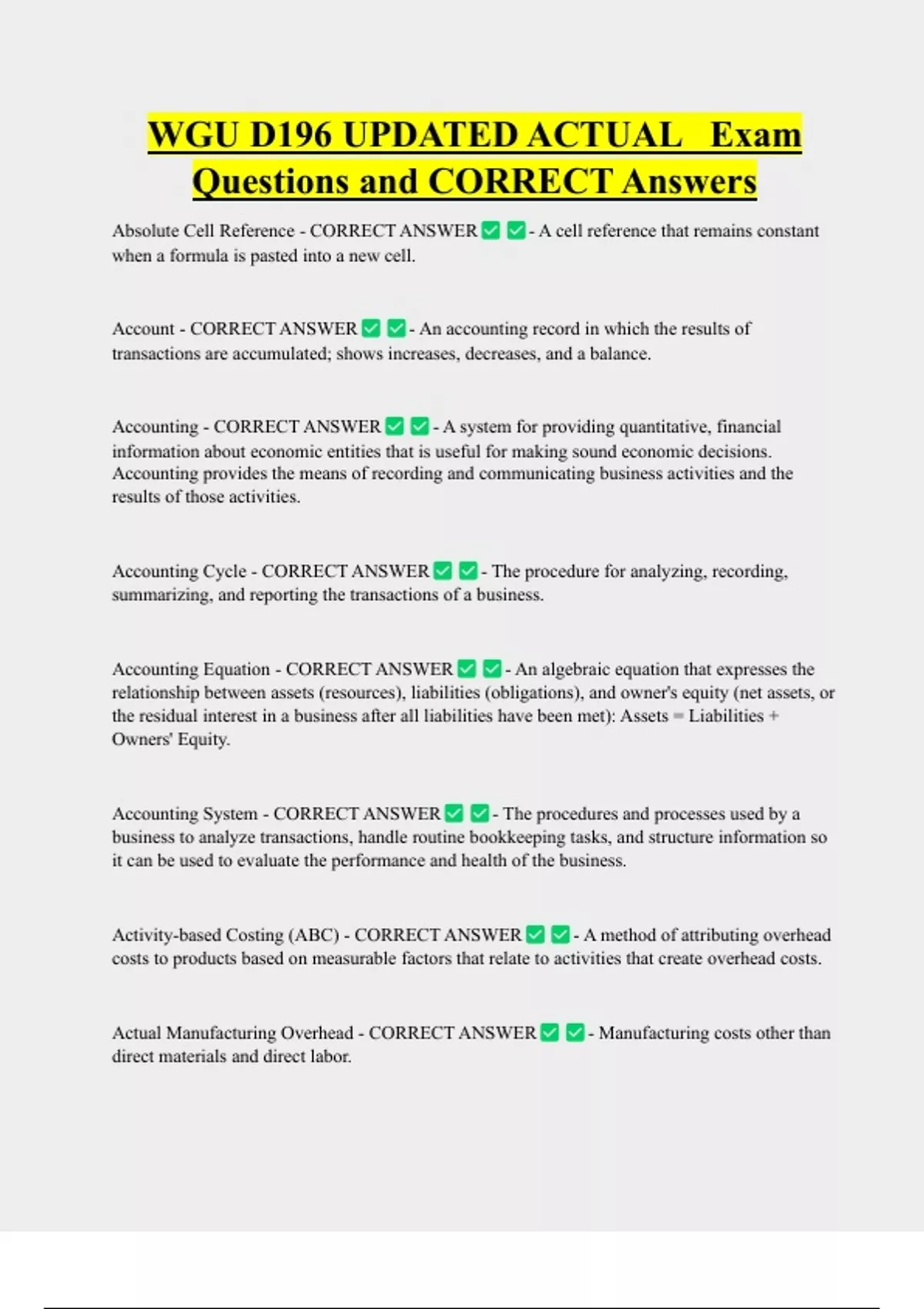 Annual Report - CORRECT ANSWER - A document that summarizes the results of