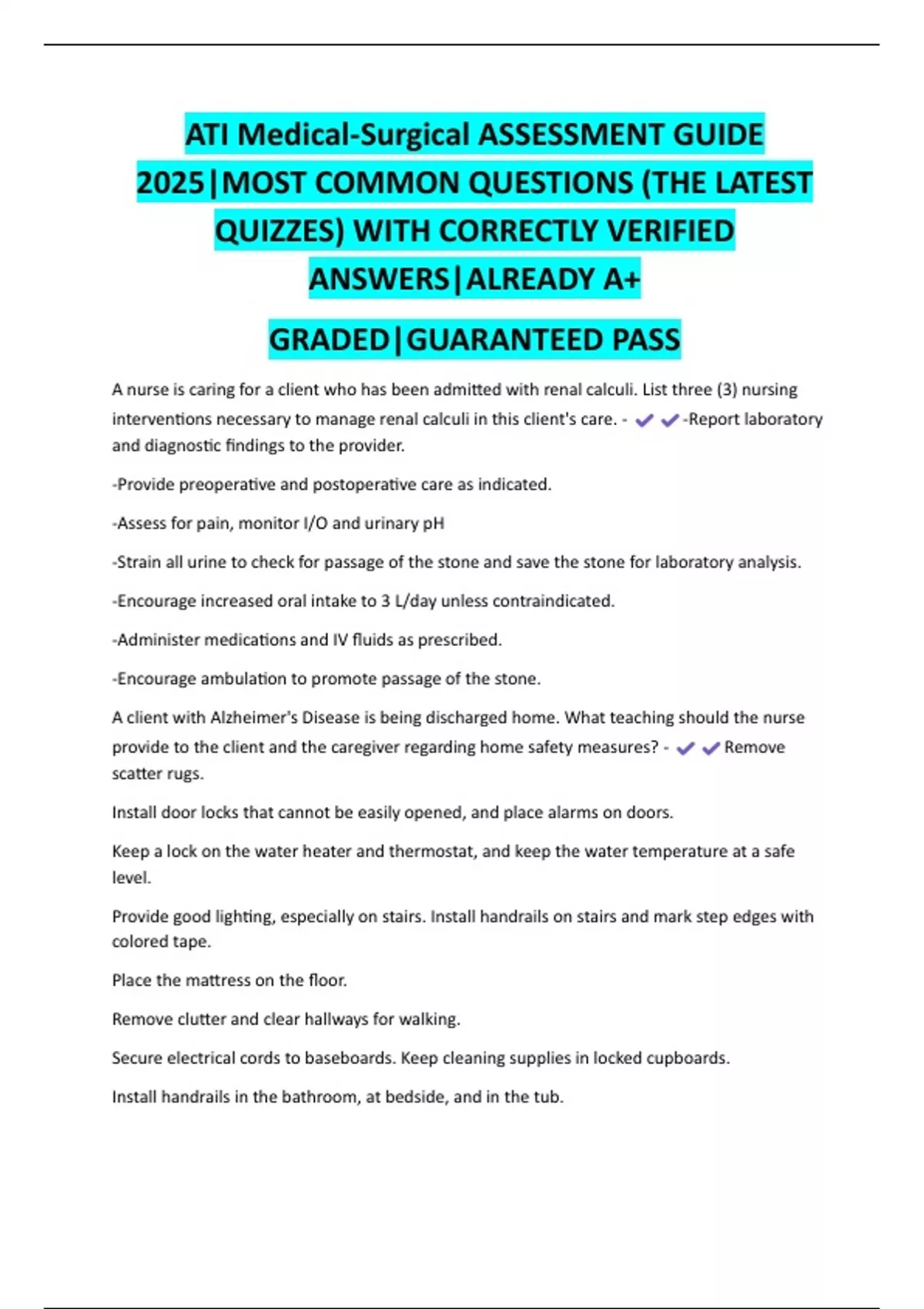 QUIZZES) WITH CORRECTLY VERIFIED