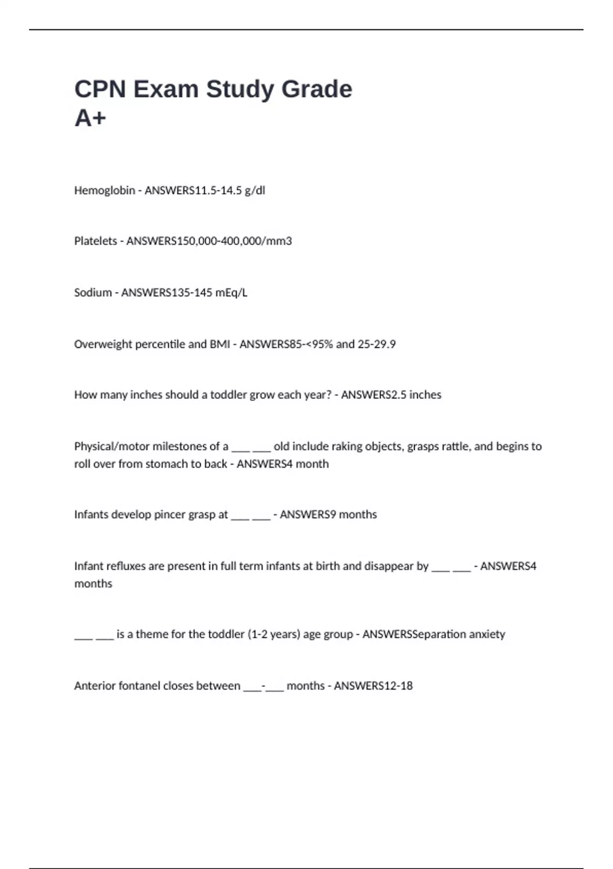 Hemoglobin - ANSWERS11.5-14.5 g/dl