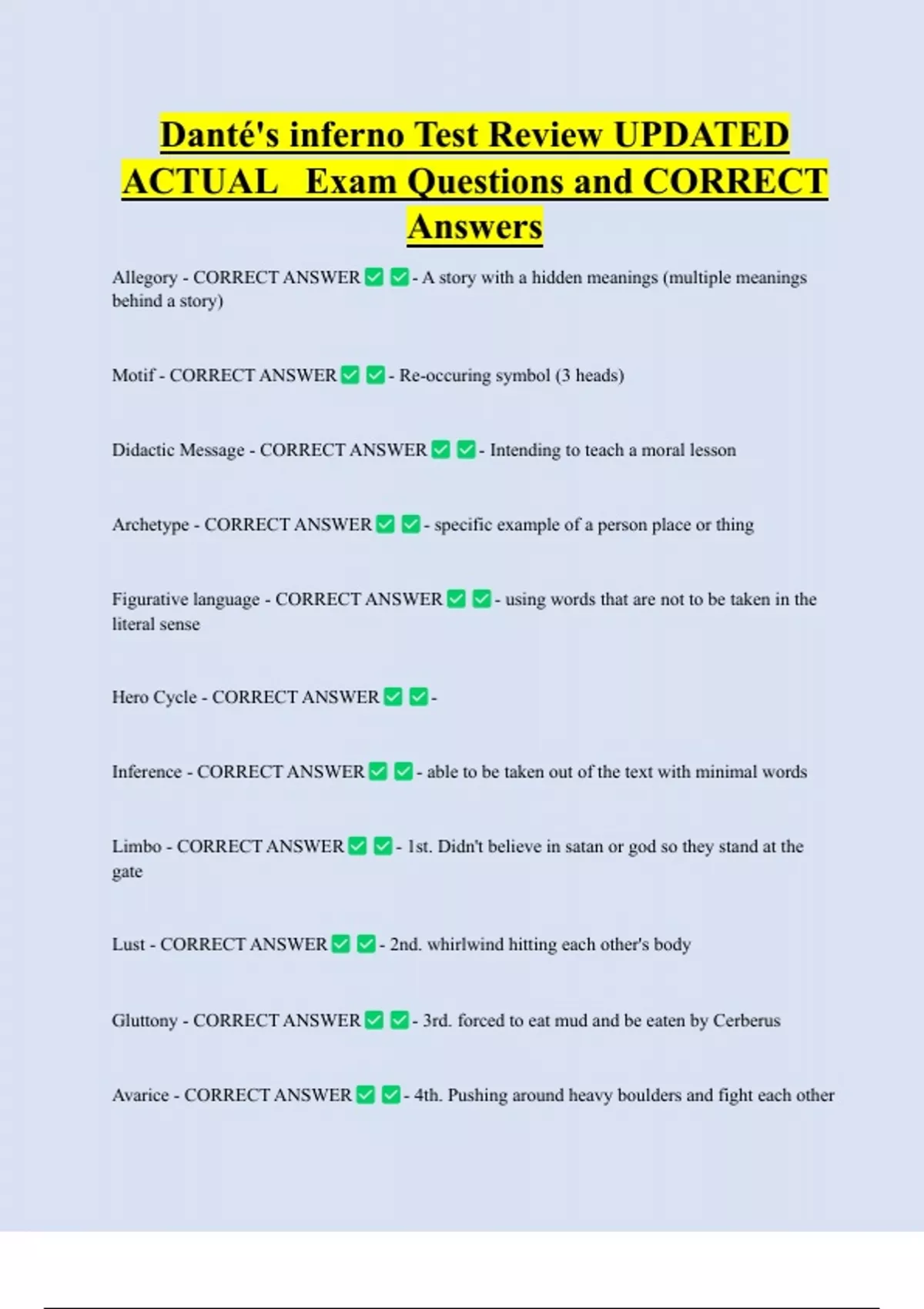 Allegory - CORRECT ANSWER - A story with a hidden meanings (multiple meanings
