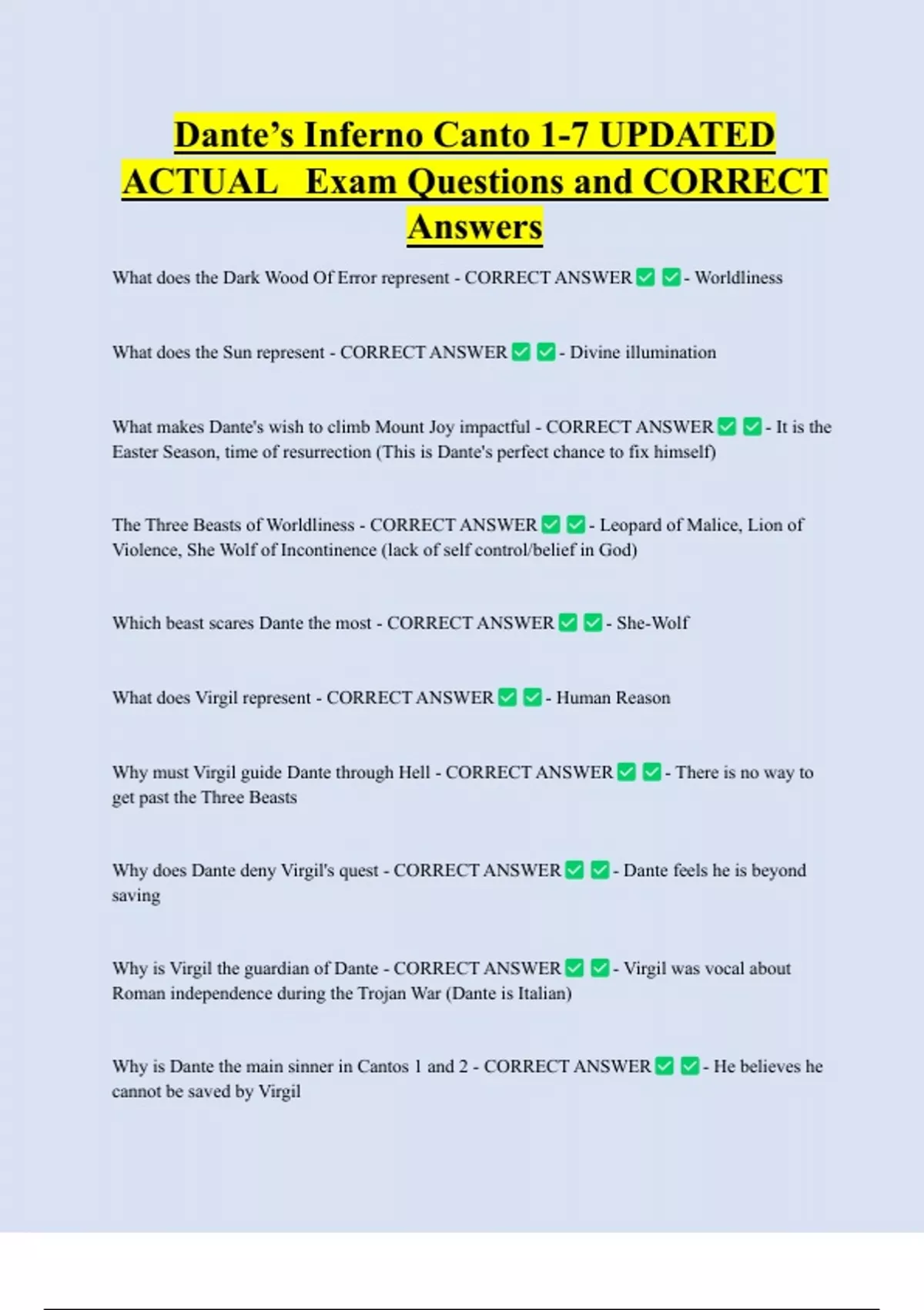 Why does Dante deny Virgil's quest - CORRECT ANSWER - Dante feels he is beyond