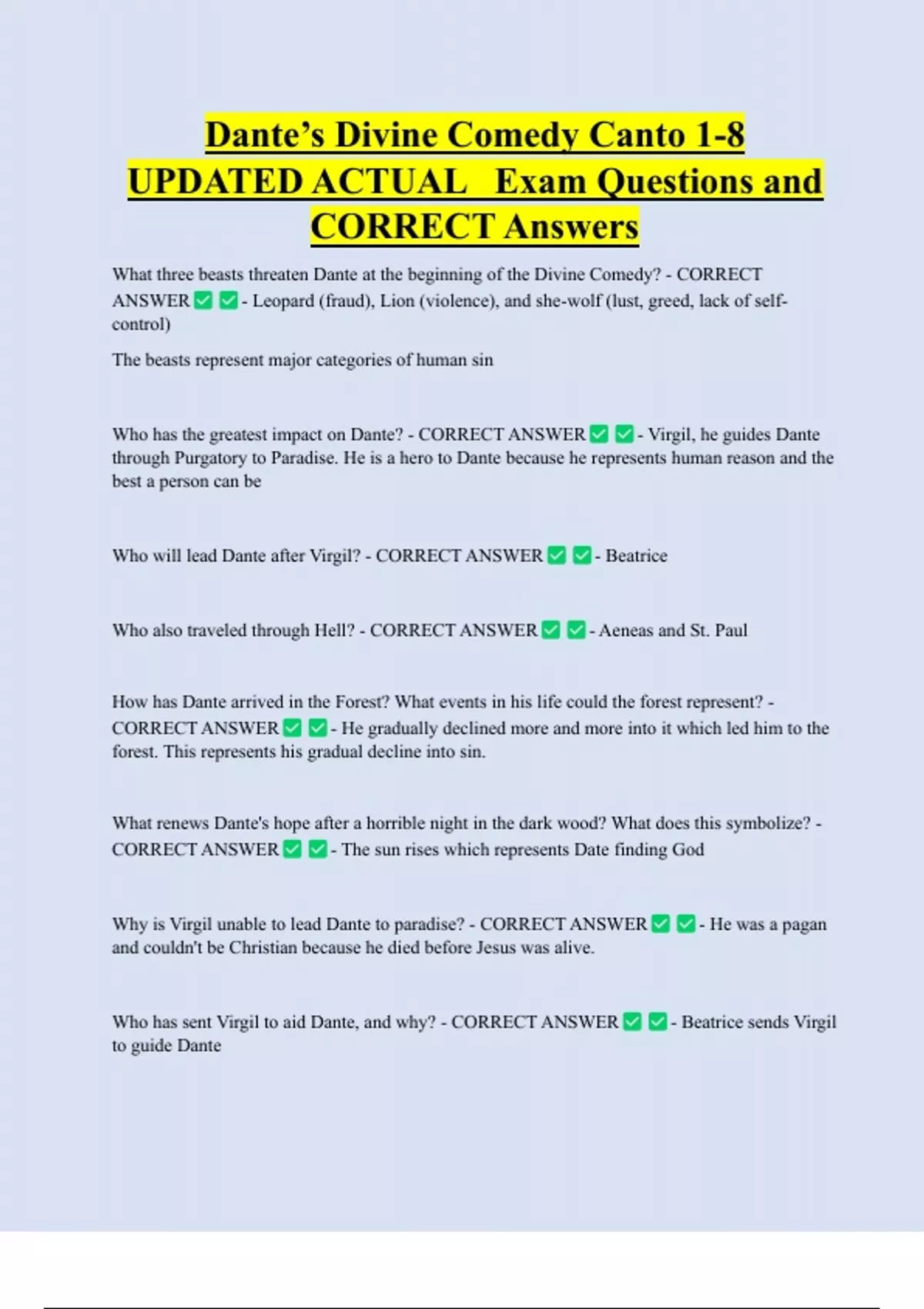 Why is Virgil unable to lead Dante to paradise? - CORRECT ANSWER - He was a pagan
