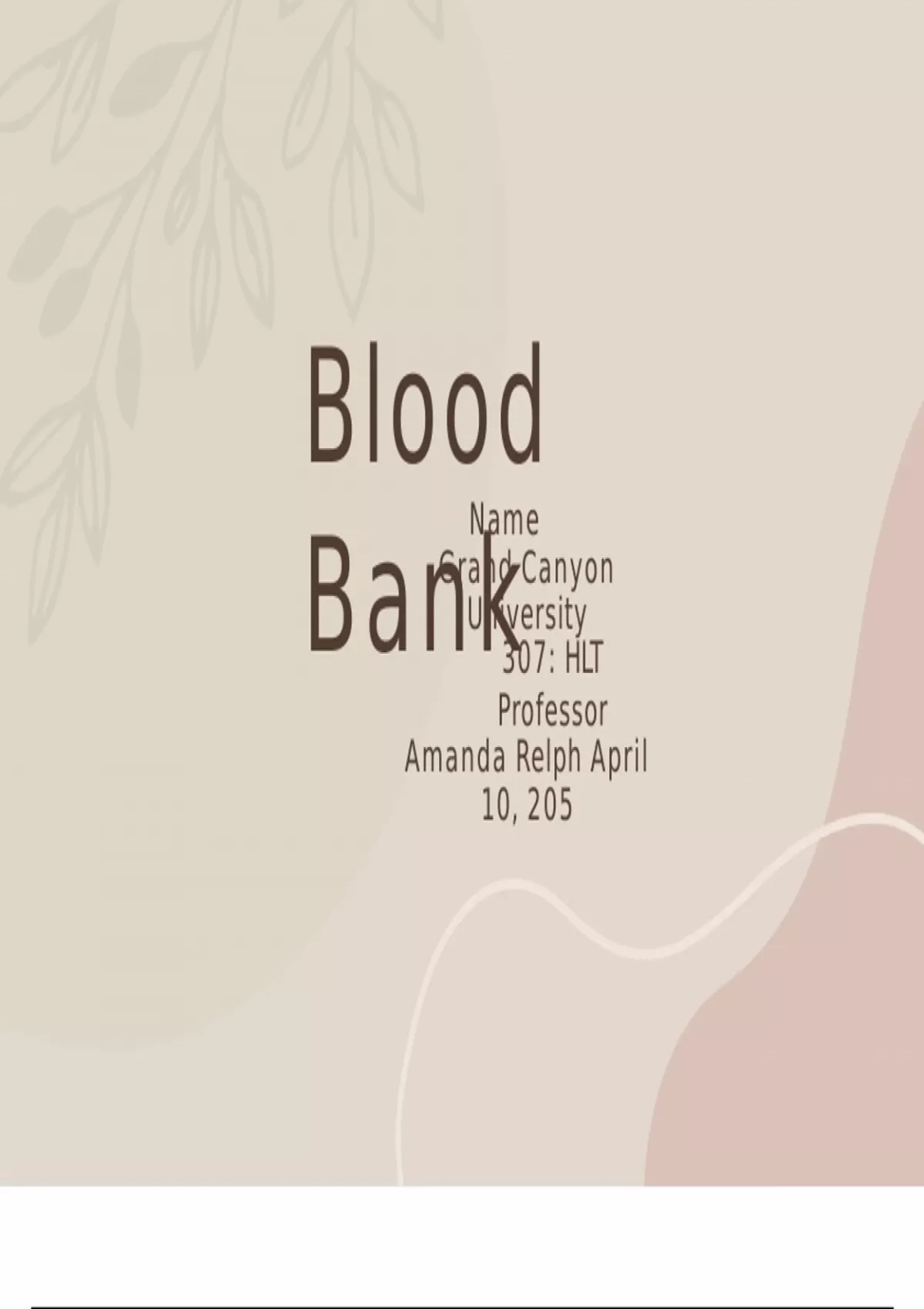 HLT 307V Week 3 Assessment; Team Collaboration in Health Care - Blood Bank