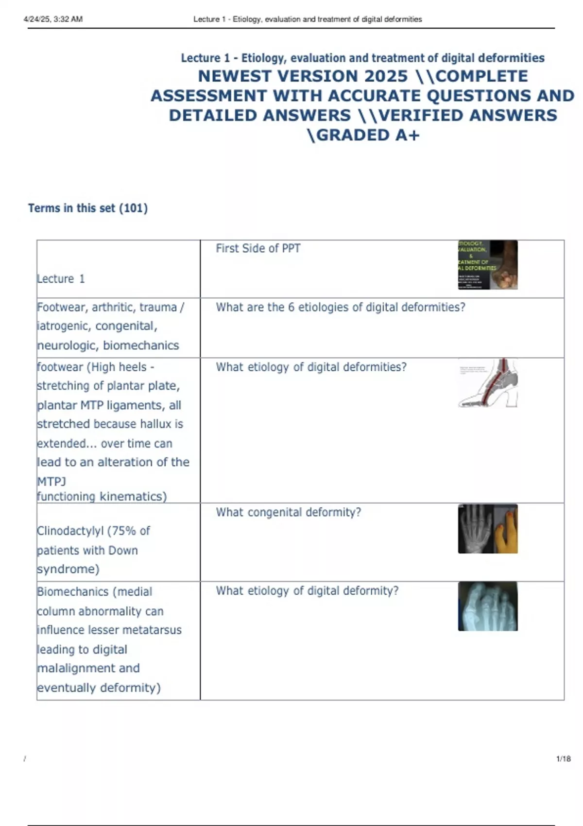 ,4/24/25, 3:32 AM Lecture 1 - Etiology, evaluation and treatment of digital deformities