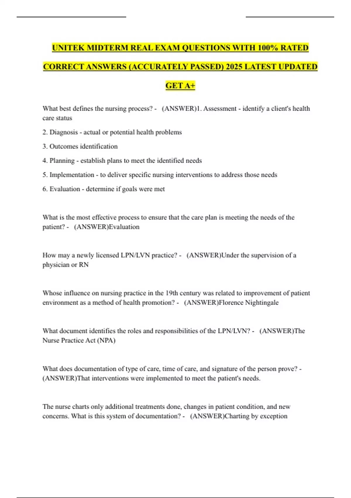 UNITEK MIDTERM REAL EXAM QUESTIONS WITH 100% RATED
