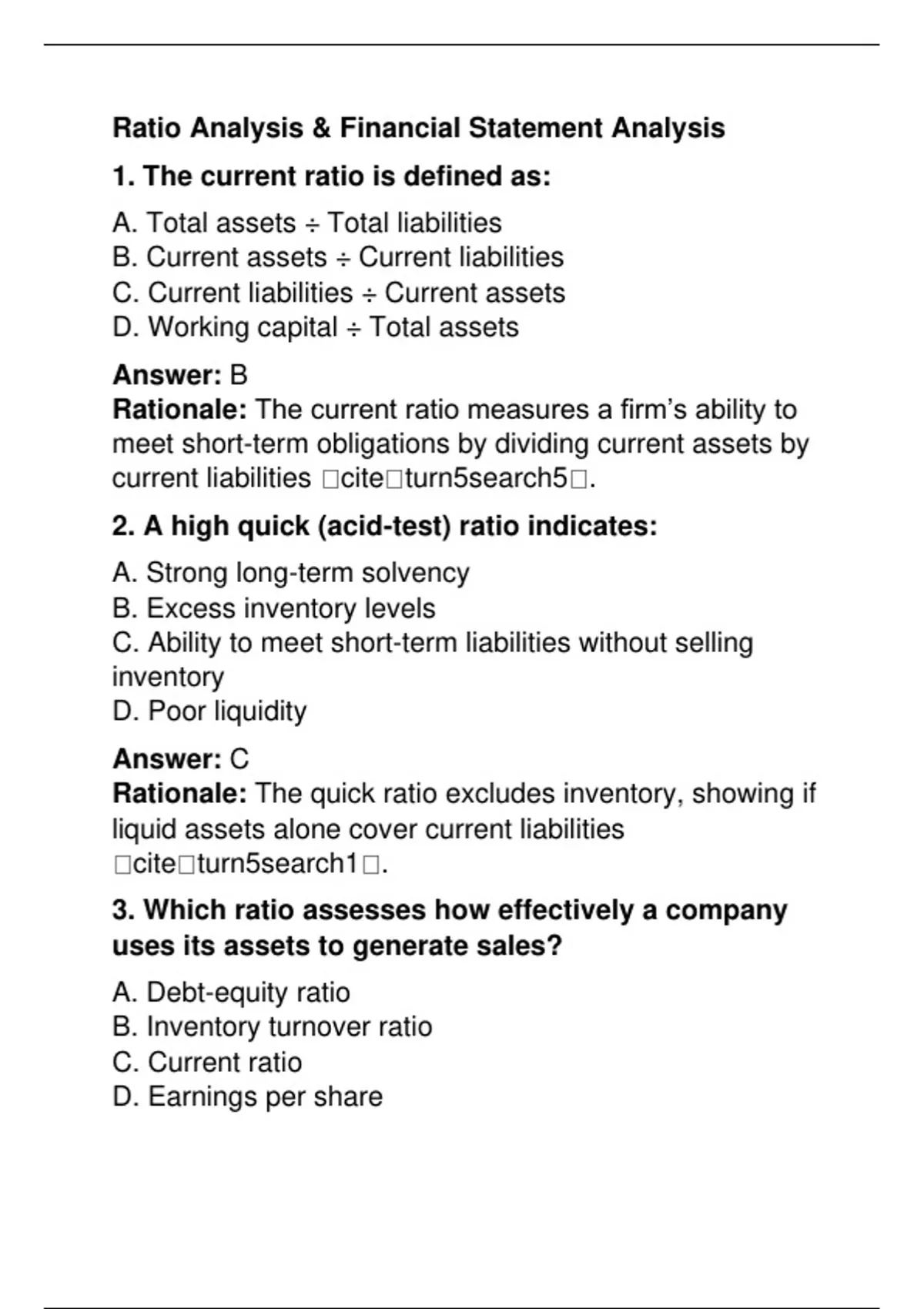 MAC3702 Assignment 2: 25 MCQs with Rationales for Strategic Financial Management Description: Master key concepts in MAC3702 with this comprehensive set of 25 multiple-choice questions, each accompanied by detailed rationales. Covering topics such as ratio analysis, working capital management, cost of capital, capital budgeting, mergers & acquisitions, and foreign exchange risk, this resource is crafted to aid students in understanding and applying financial management techniques effectively.​ Hashtags: #Education #Learning #Study #Students #Knowledge