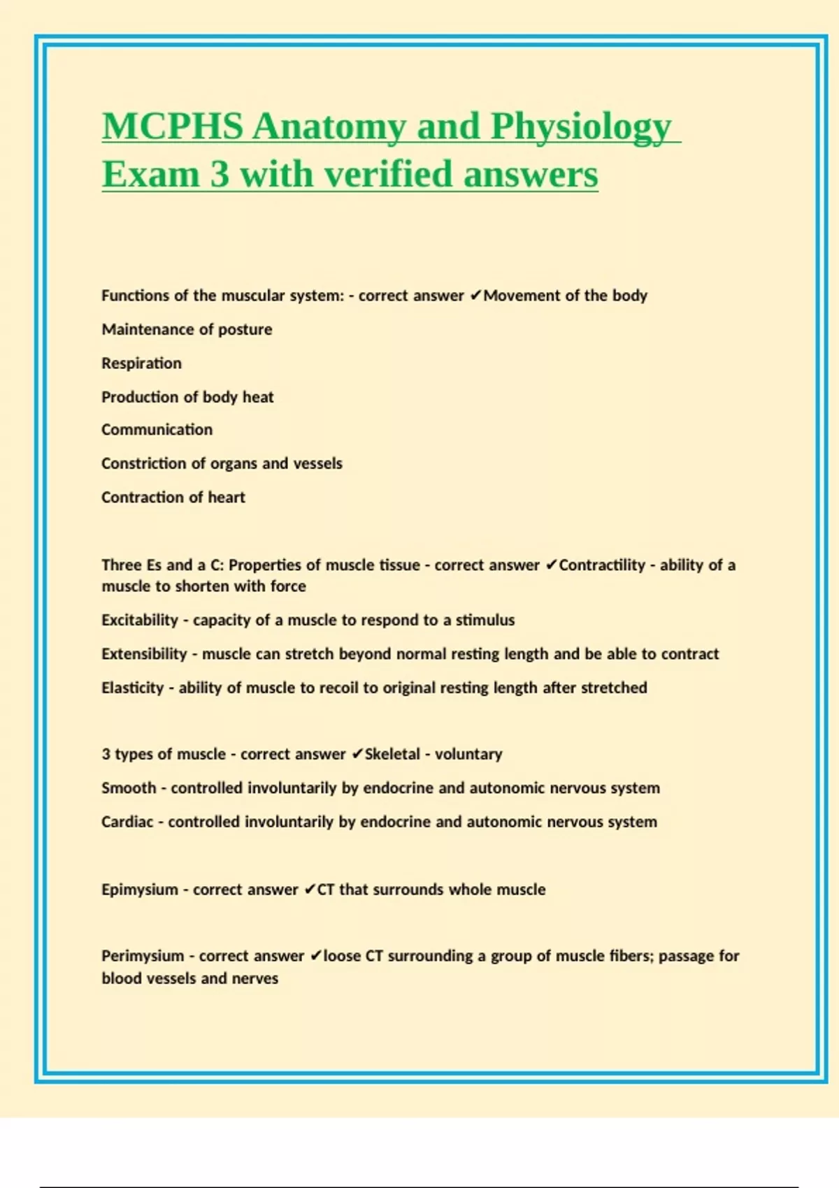 Epimysium - correct answer ✔CT that surrounds whole muscle |||||| |||||| |||||| |||||| |||||| |||||| |||||| ||||||