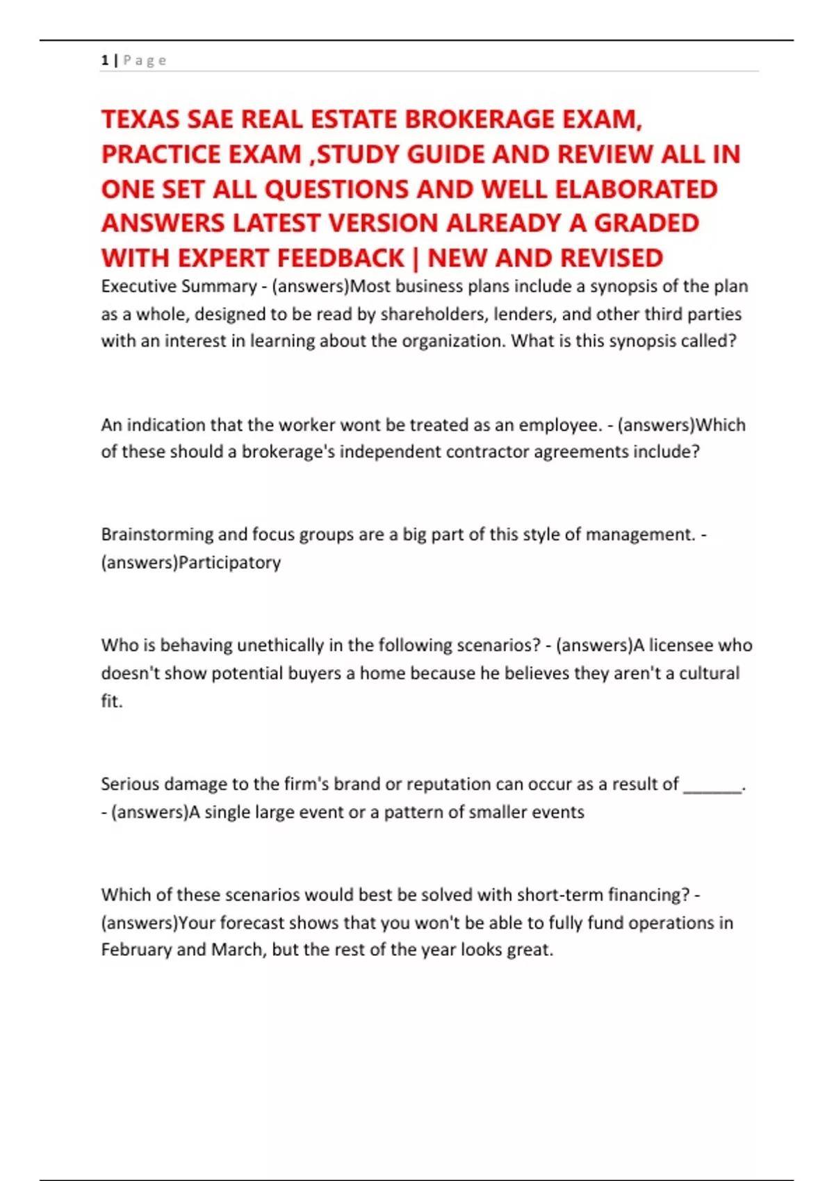 TEXAS SAE REAL ESTATE BROKERAGE EXAM,