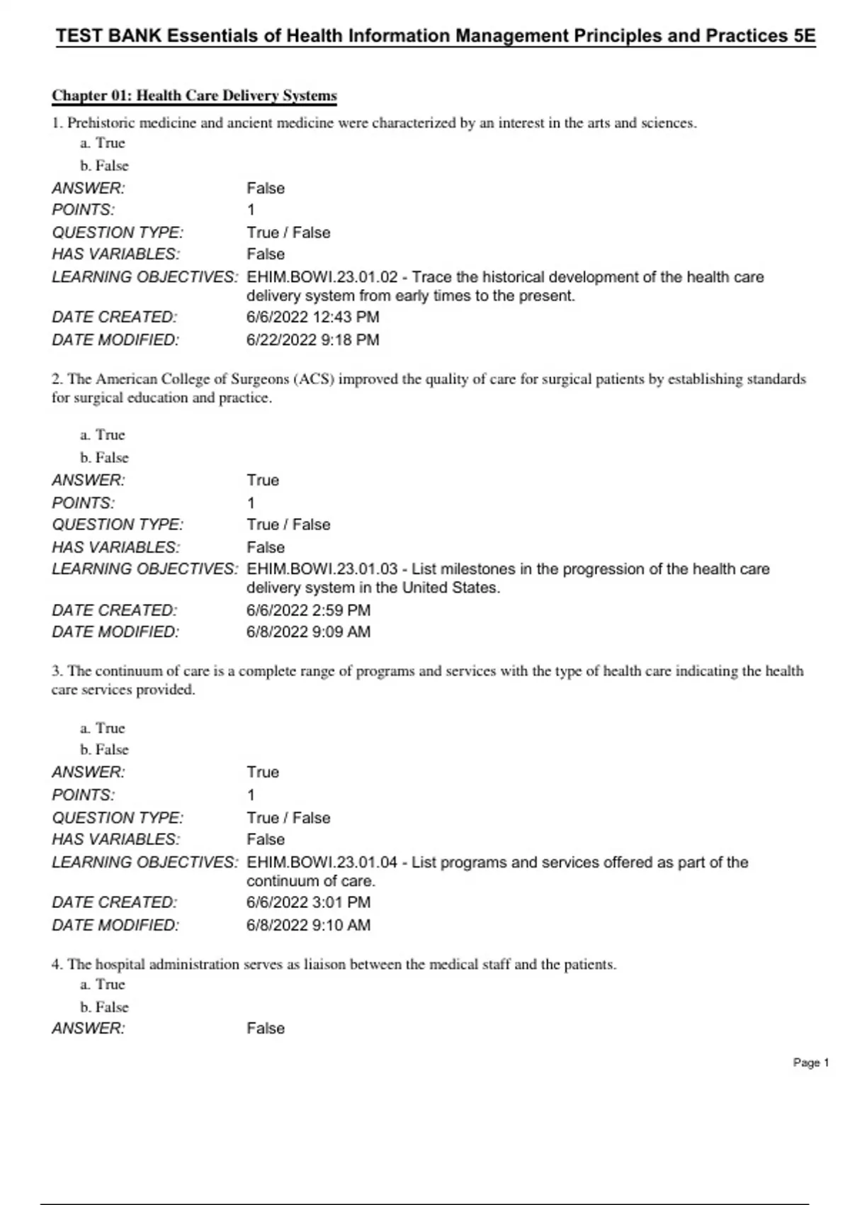 LEARNING OBJECTIVES: EHIM.BOWI.23.01.02 - Trace the historical development of the health care