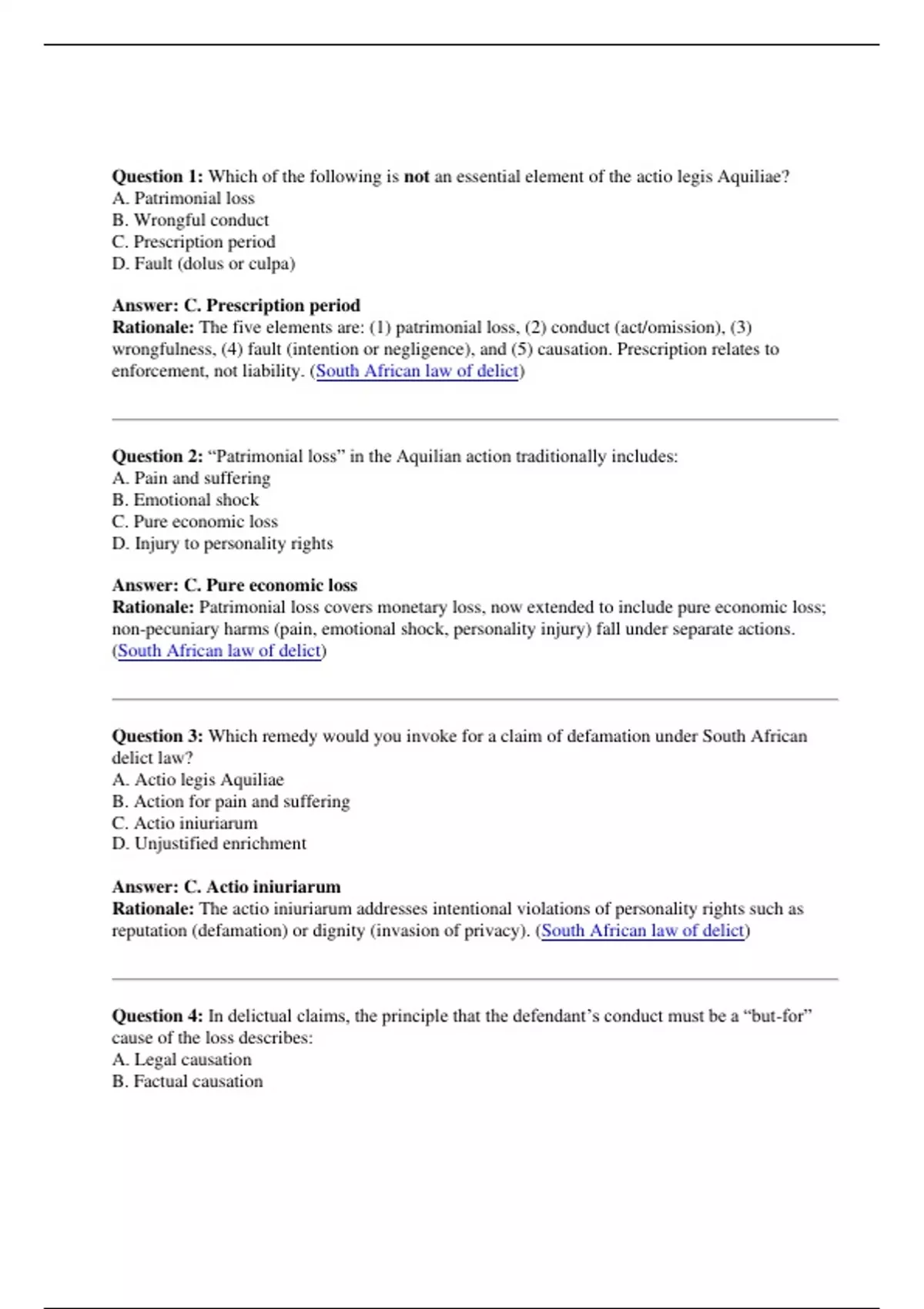 Question 2: “Patrimonial loss” in the Aquilian action traditionally includes: