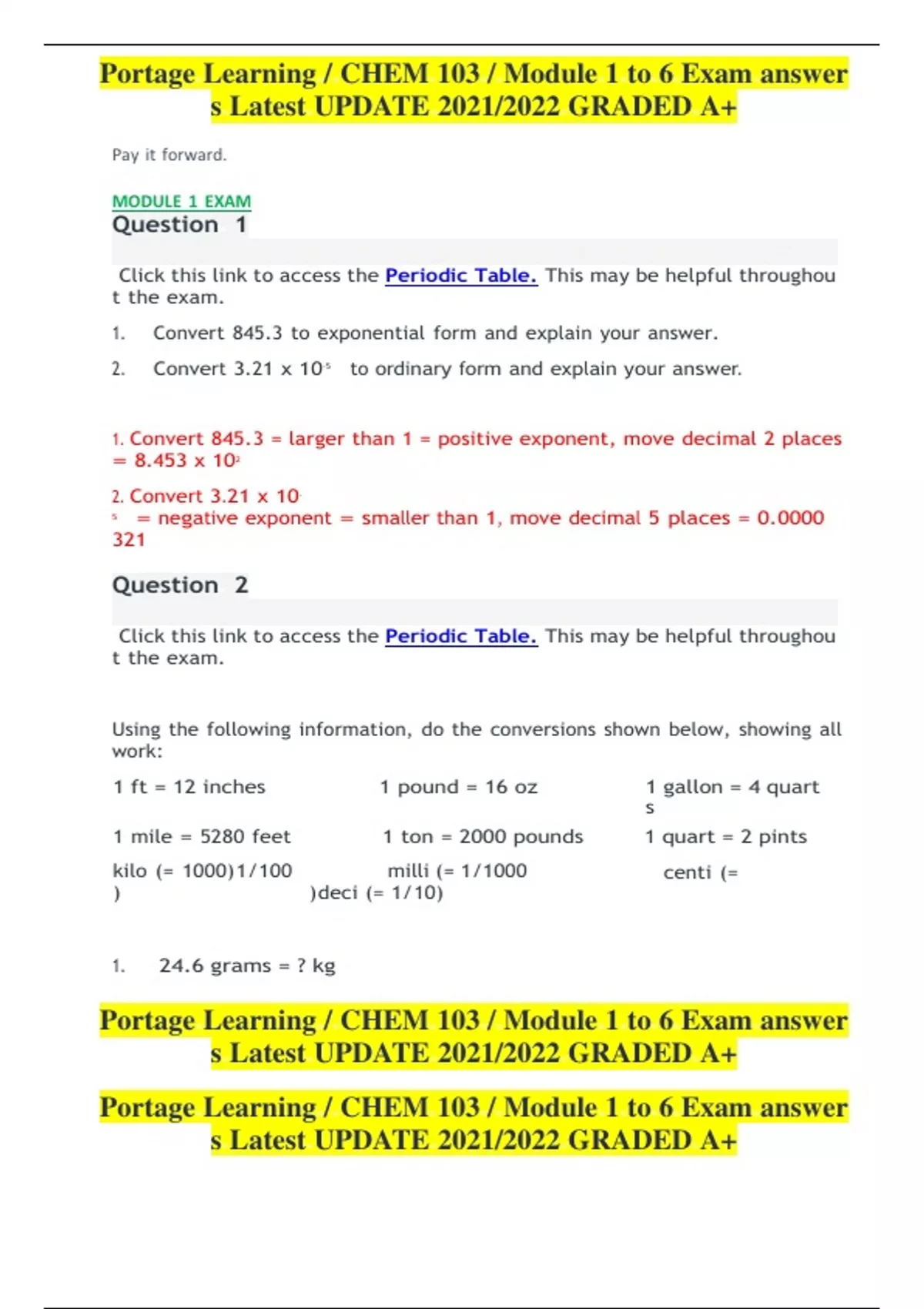 Portage Learning / CHEM 103 / Module 1 to 6 Exam answer