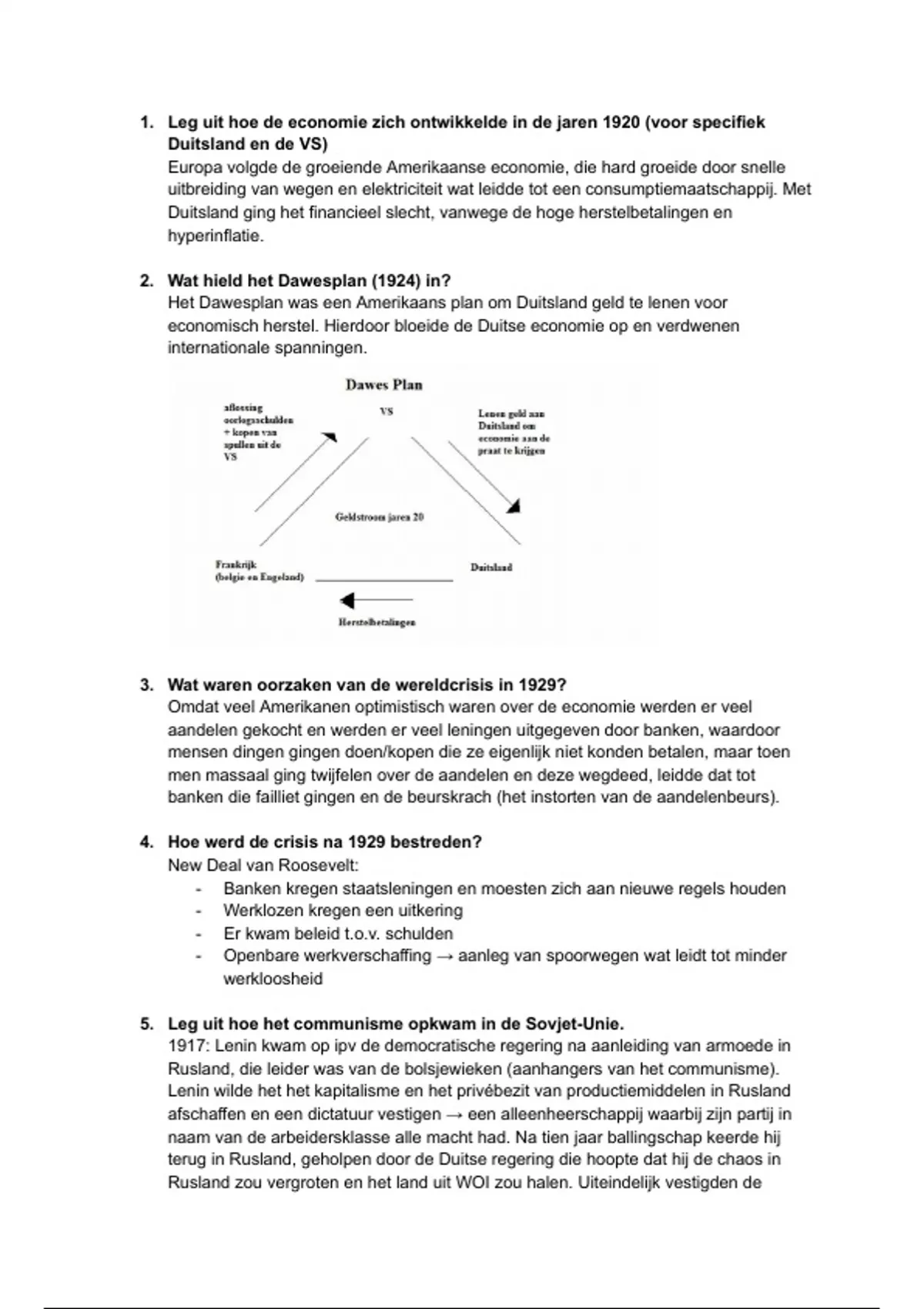 1. Leg uit hoe de economie zich ontwikkelde in de jaren 1920 (voor specifiek