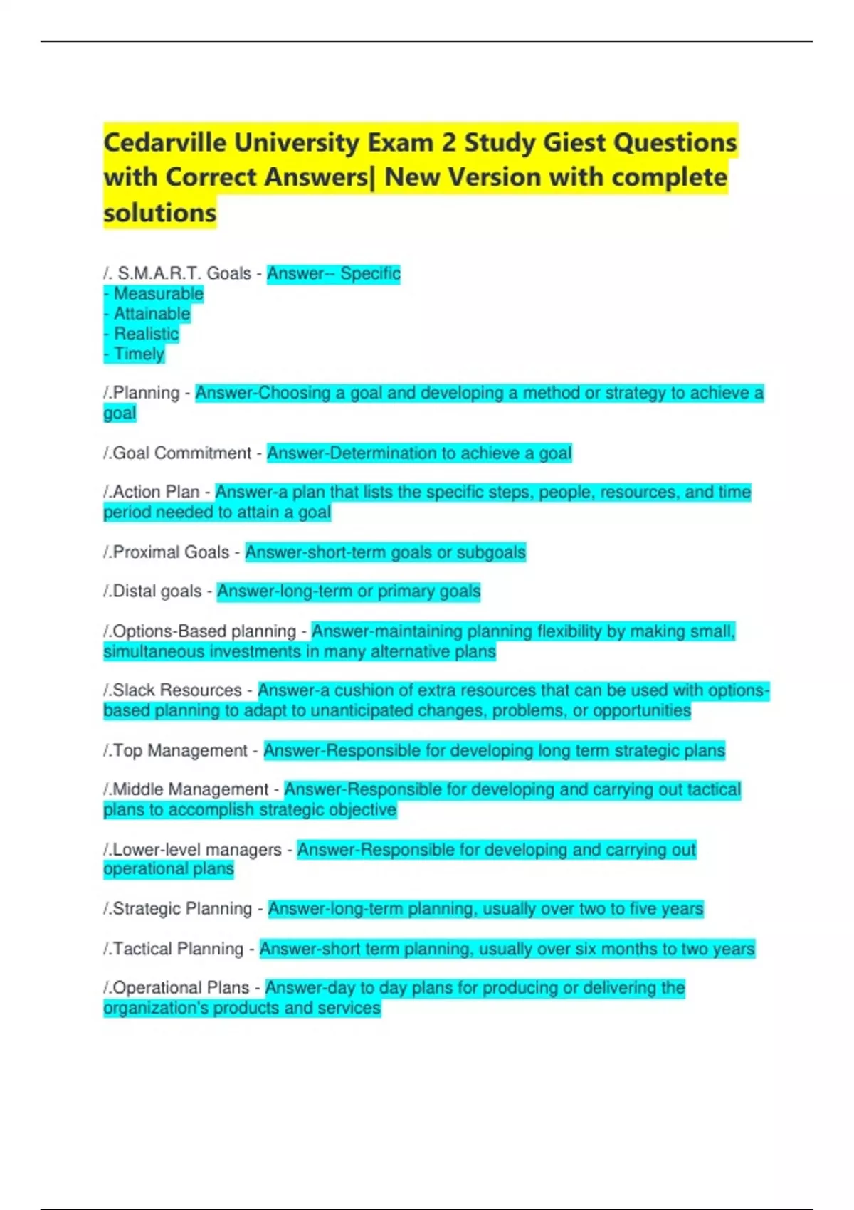 /.Strategic Planning - Answer-long-term planning, usually over two to five years