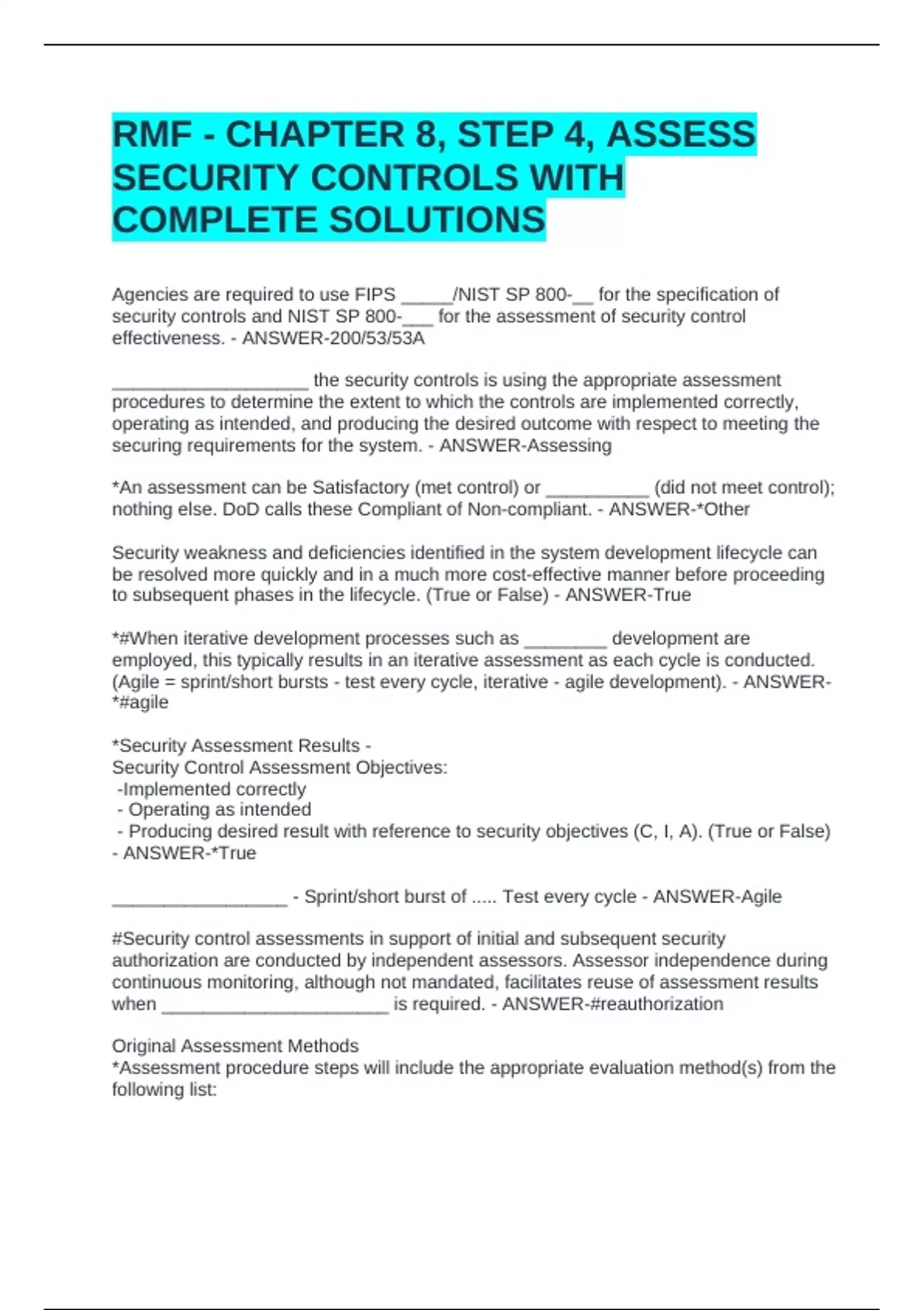 - Develop final security assessment report and addendum. - ANSWER-Assessment
