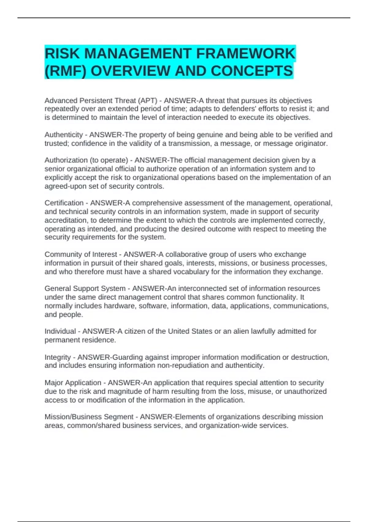 (RMF) OVERVIEW AND CONCEPTS