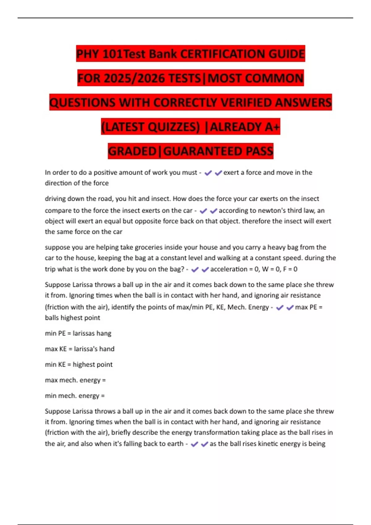 QUESTIONS WITH CORRECTLY VERIFIED ANSWERS